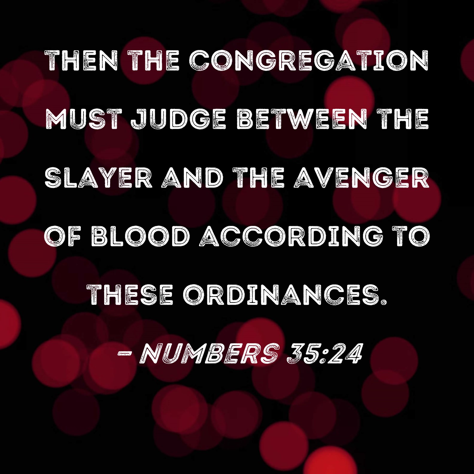Numbers 35:24 then the congregation must judge between the slayer and the avenger of blood according to these ordinances.