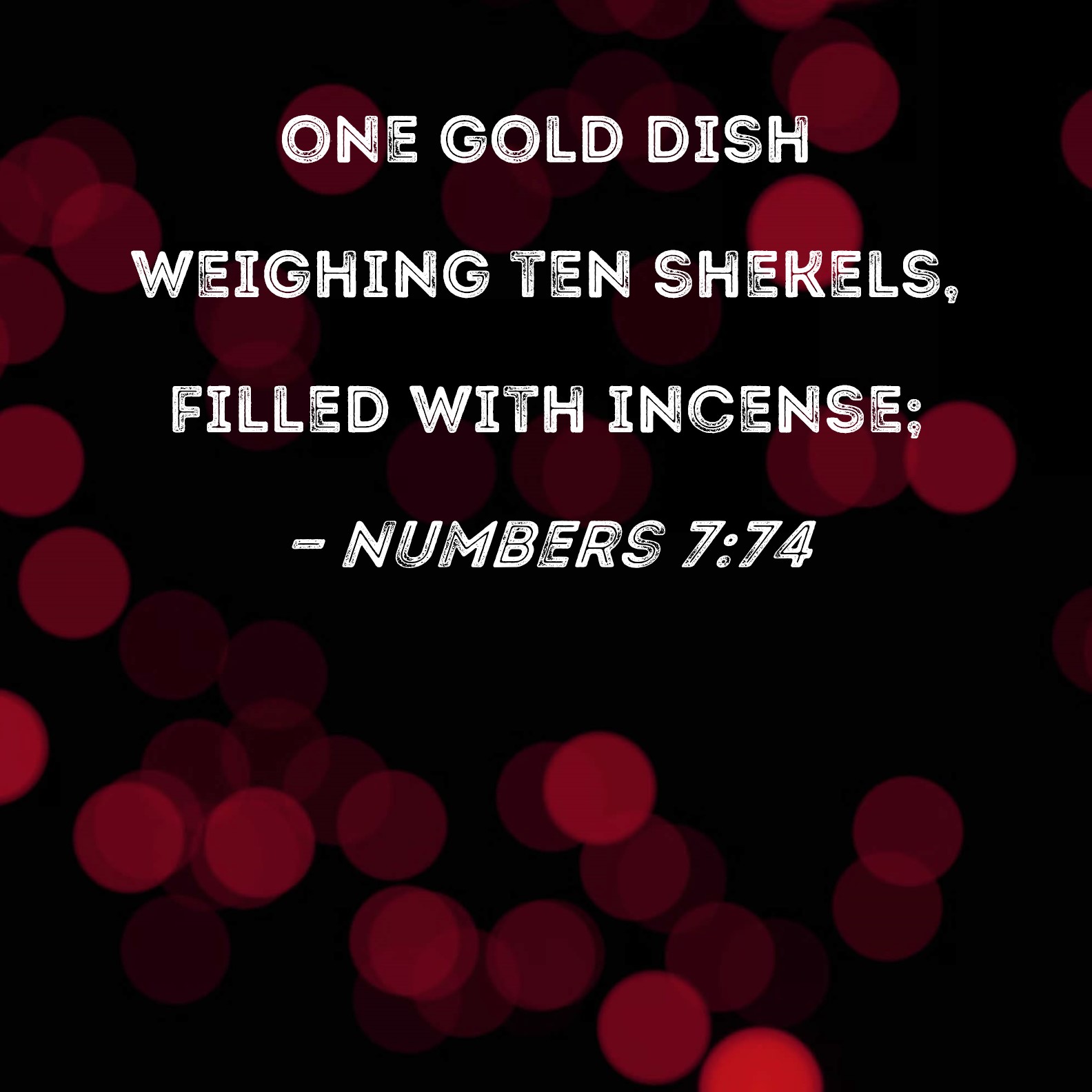 Numbers 7:74 one gold dish weighing ten shekels, filled with incense;