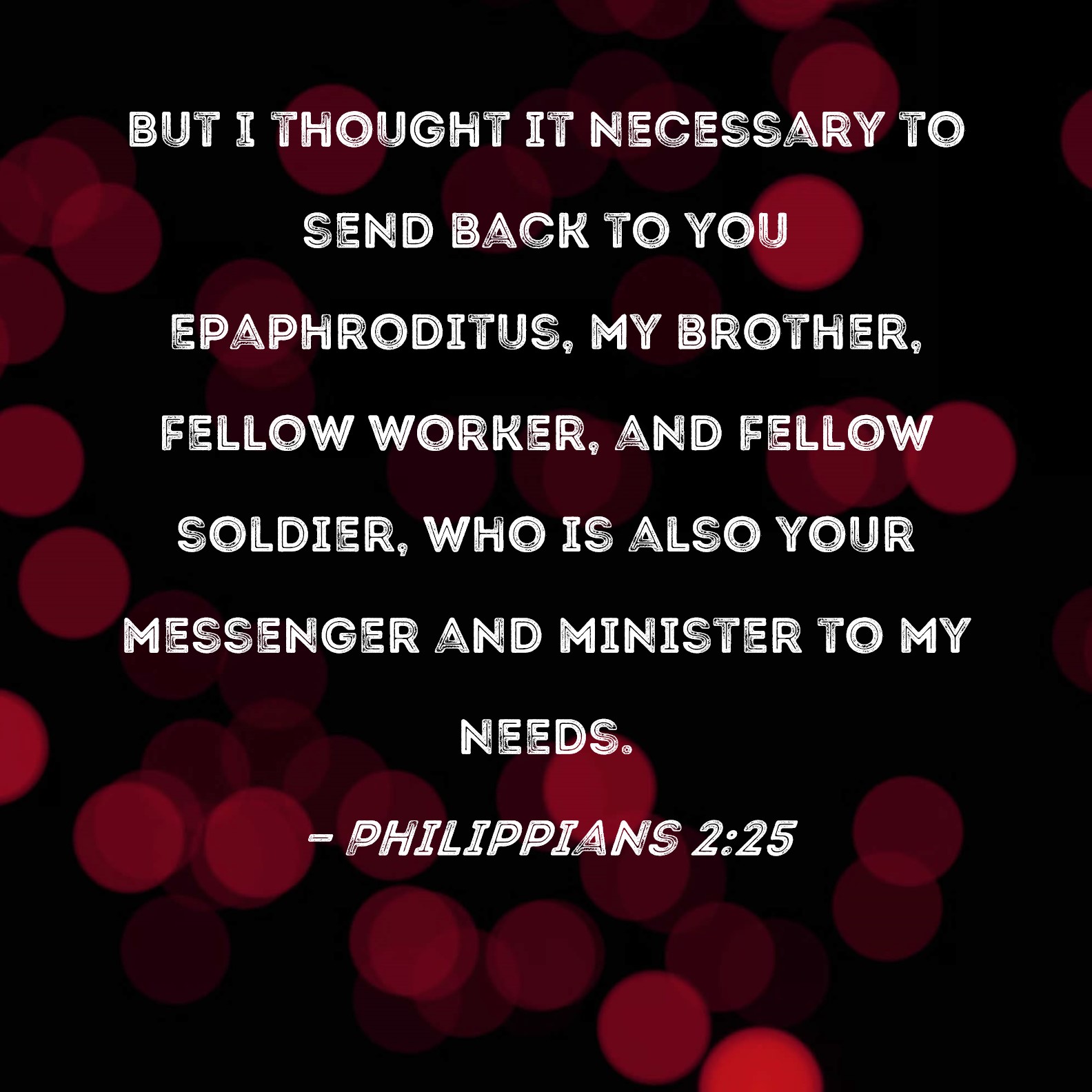 Philippians 2:25 But I thought it necessary to send back to you Epaphroditus, my brother, fellow worker, and fellow soldier, who is also your messenger and minister to my needs.