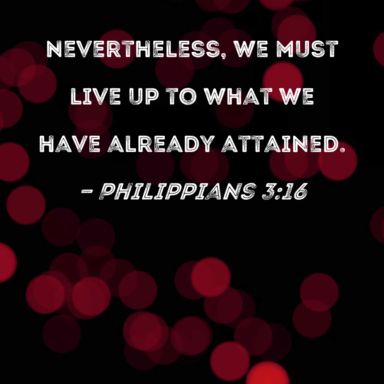Philippians 3:16 Nevertheless, we must live up to what we have already attained.