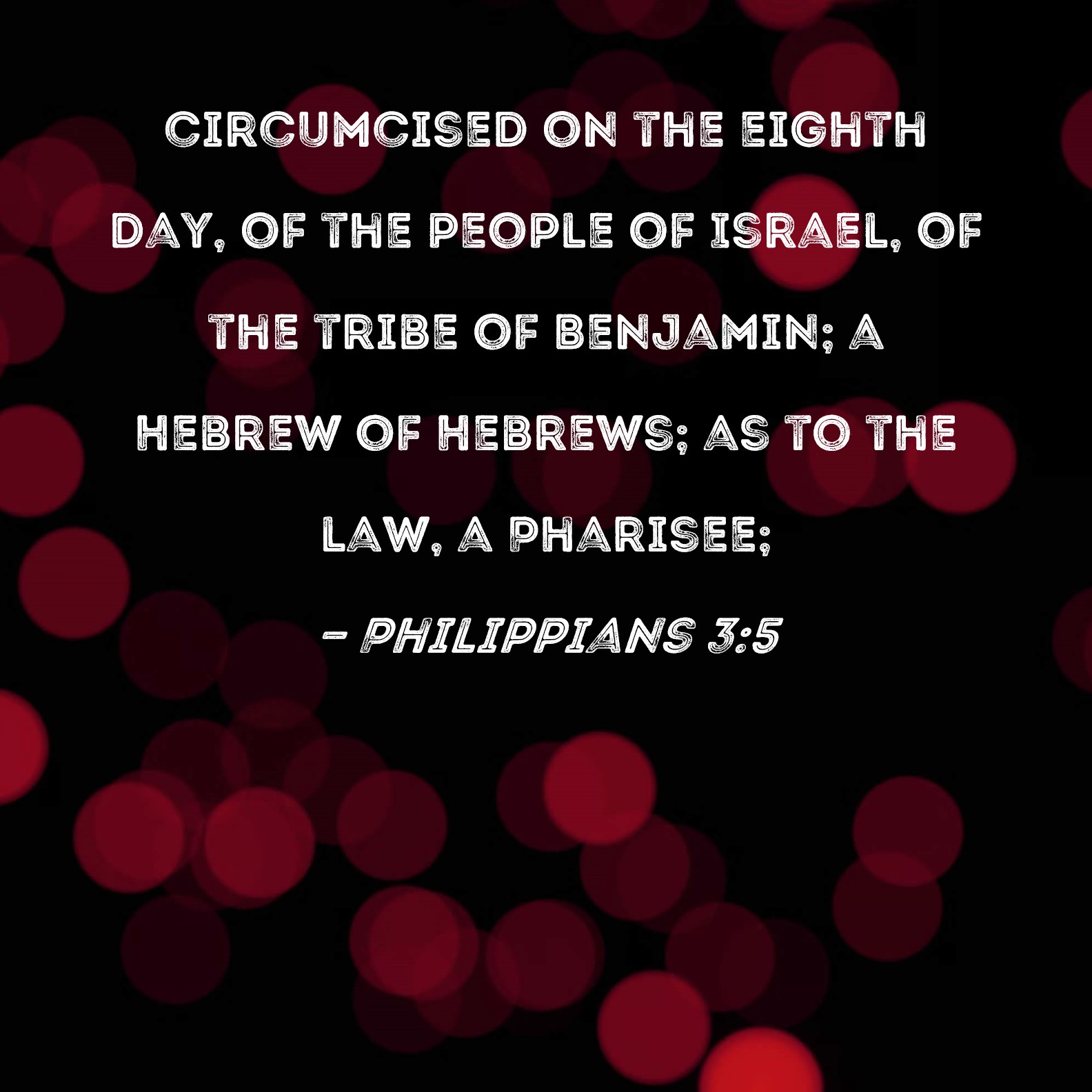 Philippians 3:5 circumcised on the eighth day, of the people of Israel, of the tribe of Benjamin; a Hebrew of Hebrews; as to the law, a Pharisee;