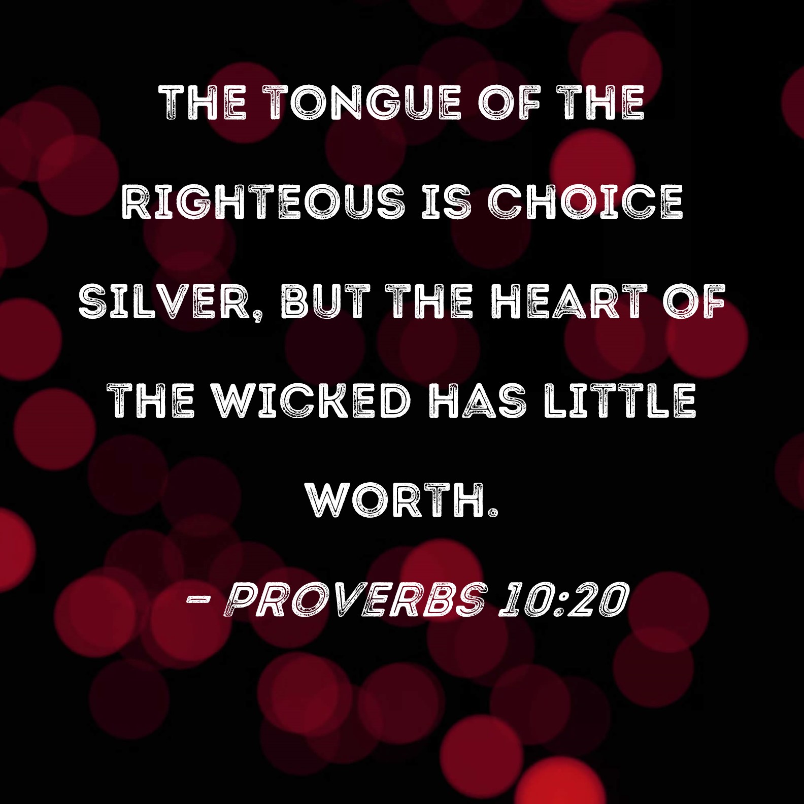 Proverbs 10:20 The tongue of the righteous is choice silver, but the heart of the wicked has little worth.