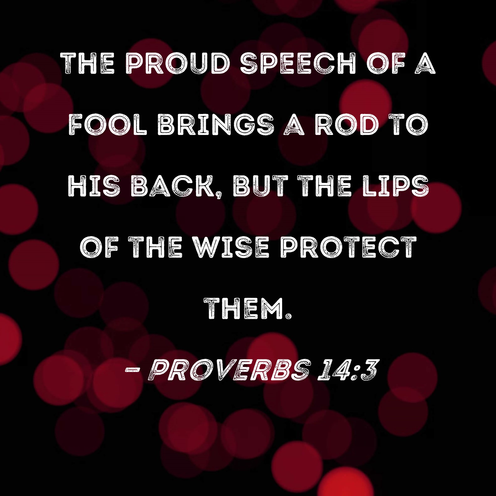 Proverbs 14:3 The proud speech of a fool brings a rod to his back, but the lips of the wise protect them.