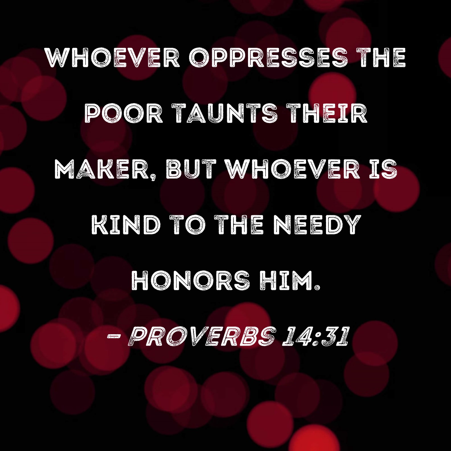 Proverbs 14:31 Whoever oppresses the poor taunts their Maker, but whoever is kind to the needy honors Him.