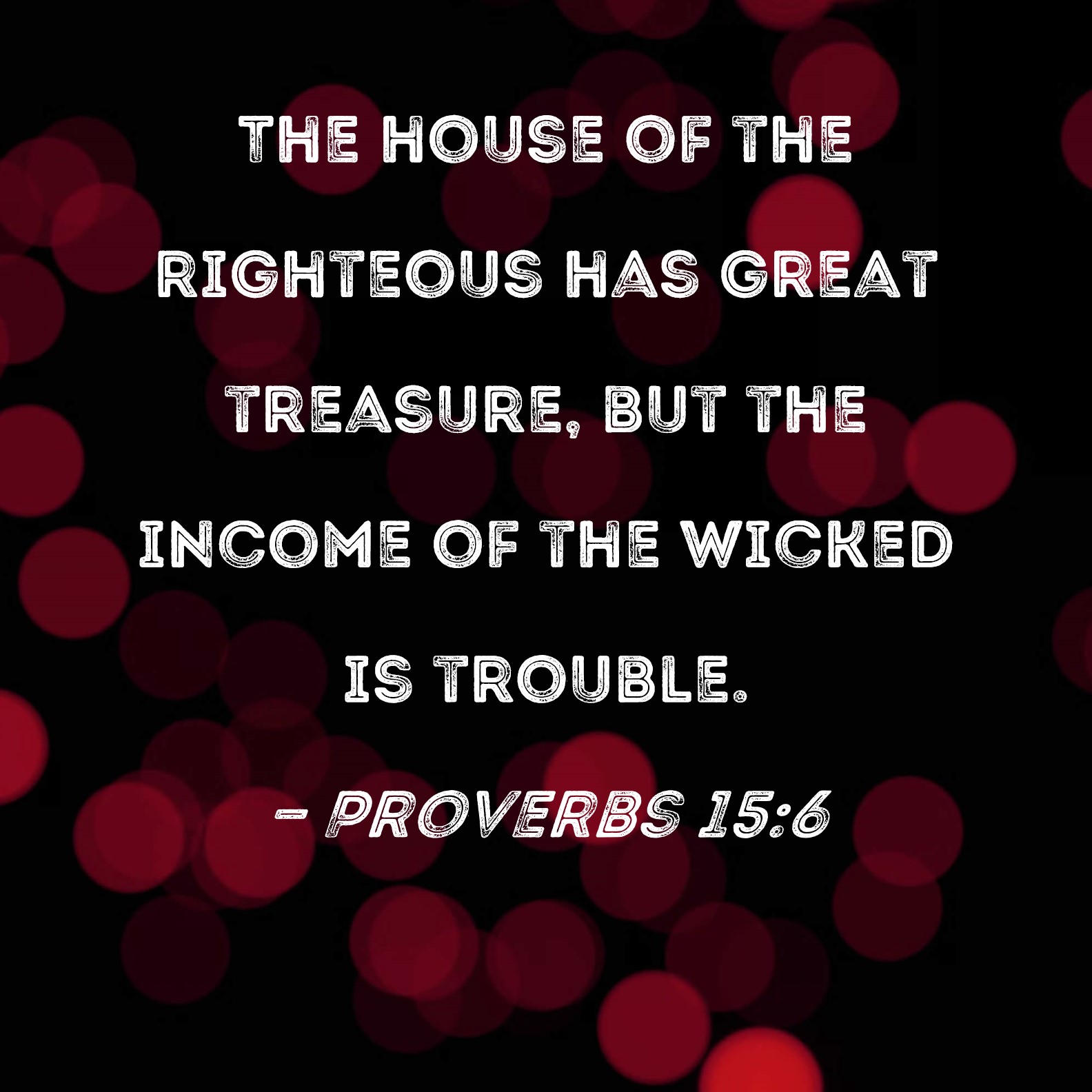 Proverbs 15:6 The house of the righteous has great treasure, but the income of the wicked is trouble.