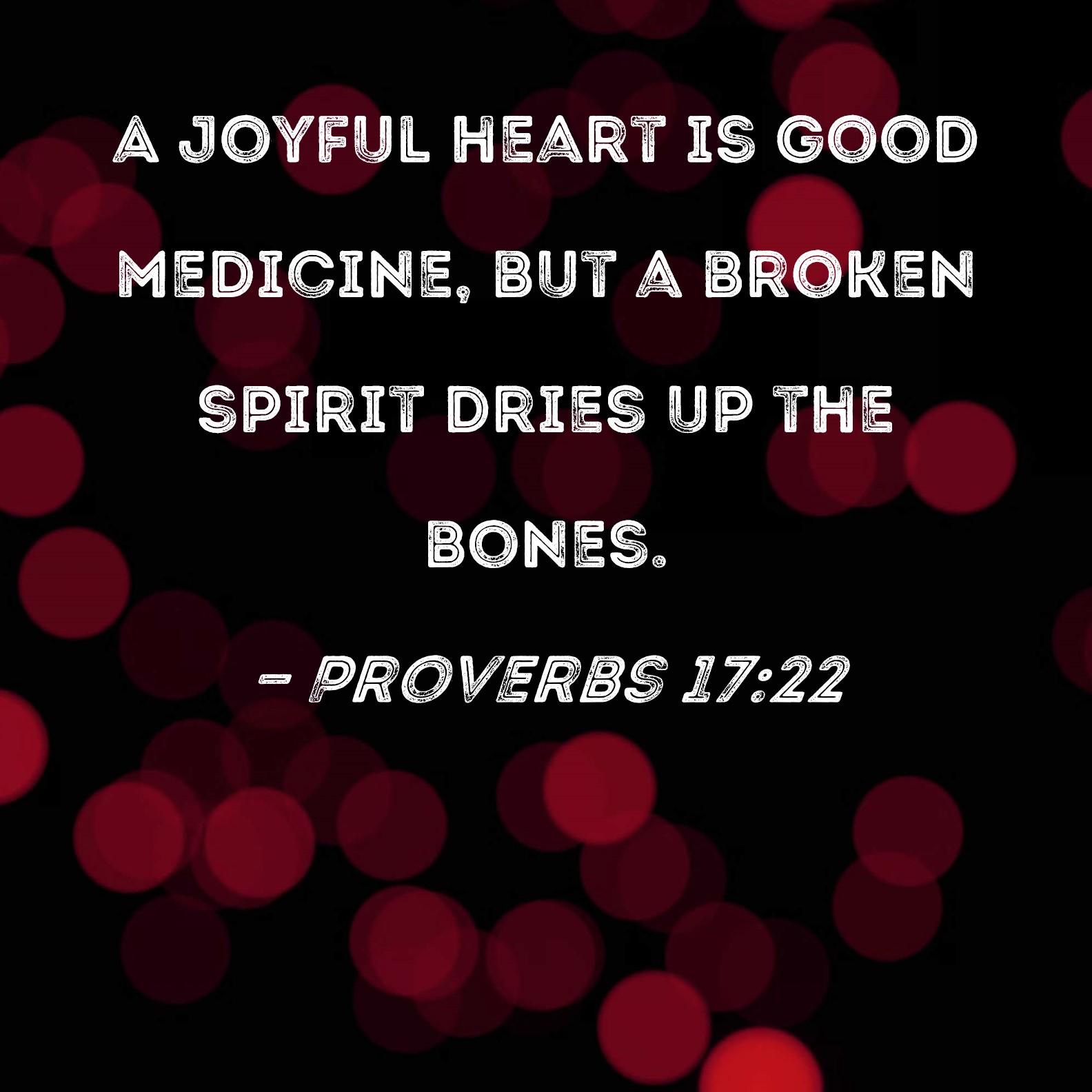 Proverbs 17:22 A joyful heart is good medicine, but a broken spirit dries up the bones.