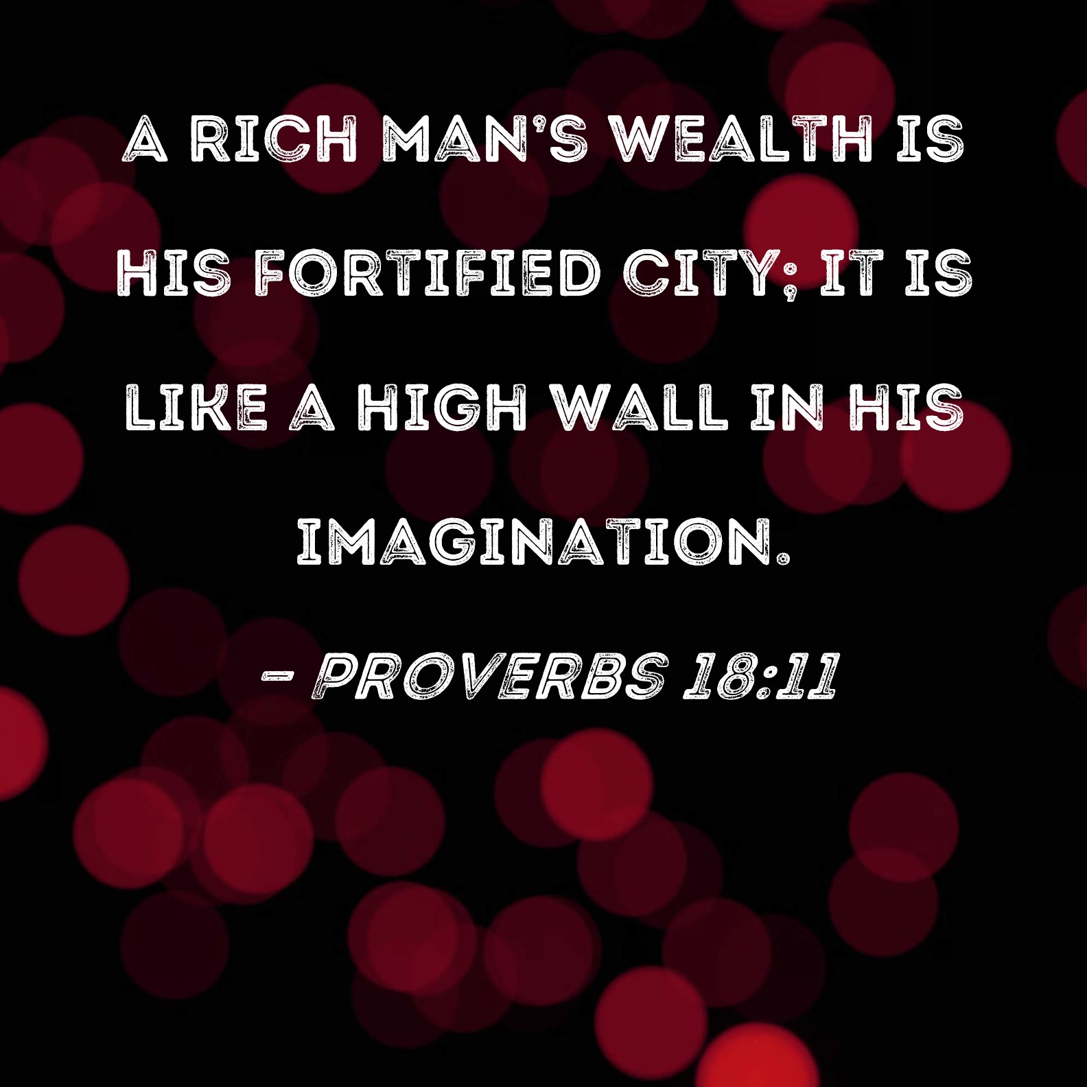 Proverbs 18:11 A rich man's wealth is his fortified city; it is like a high wall in his imagination.