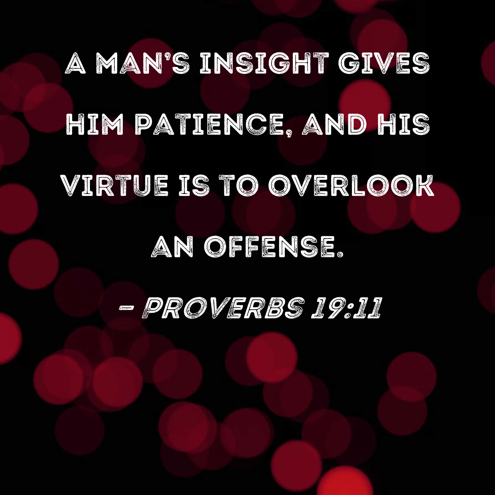 Proverbs 19:11 A man's insight gives him patience, and his virtue is to overlook an offense.