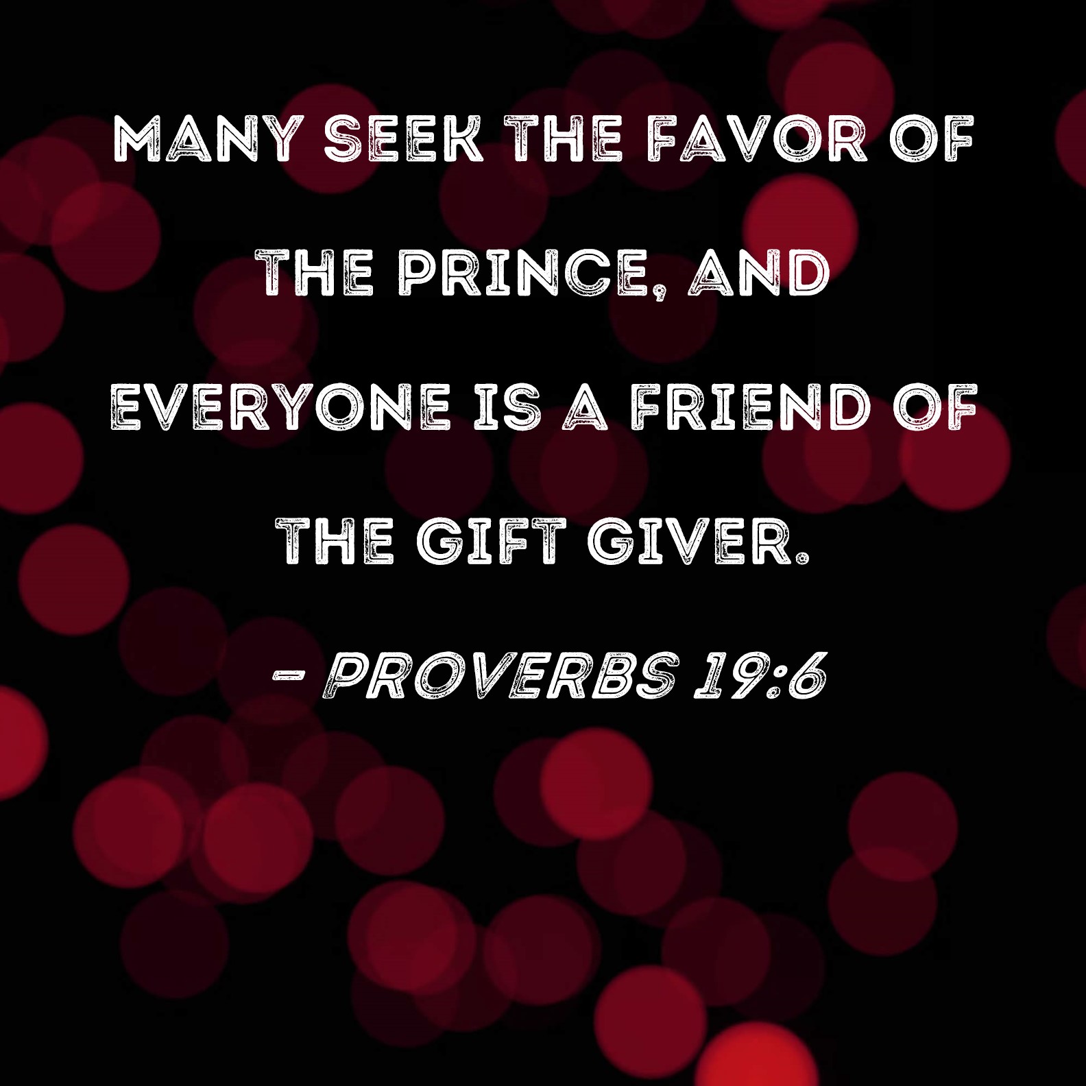 Proverbs 19:6 Many seek the favor of the prince, and everyone is a friend of the gift giver.