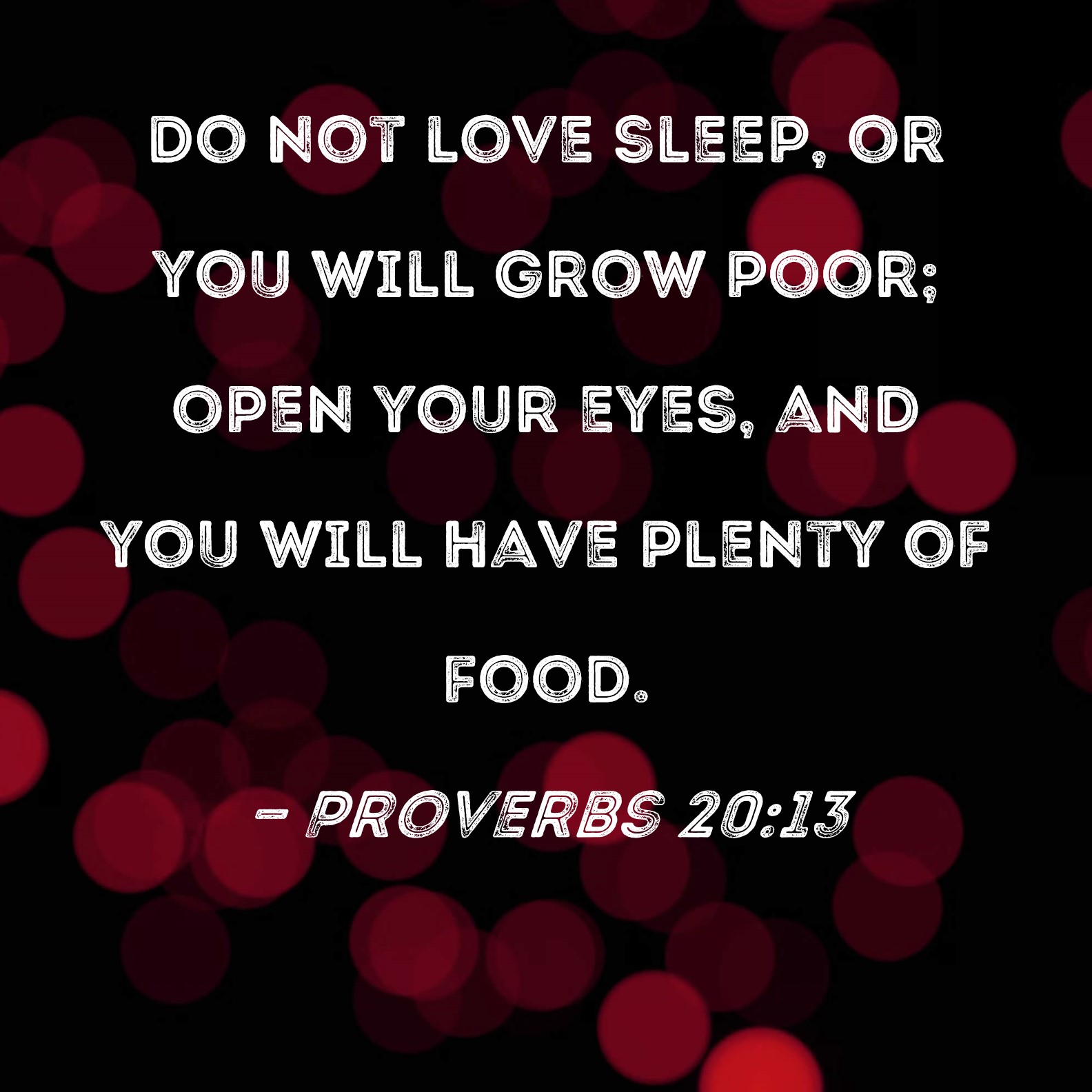 Proverbs 20:13 Do not love sleep, or you will grow poor; open your eyes, and you will have plenty of food.