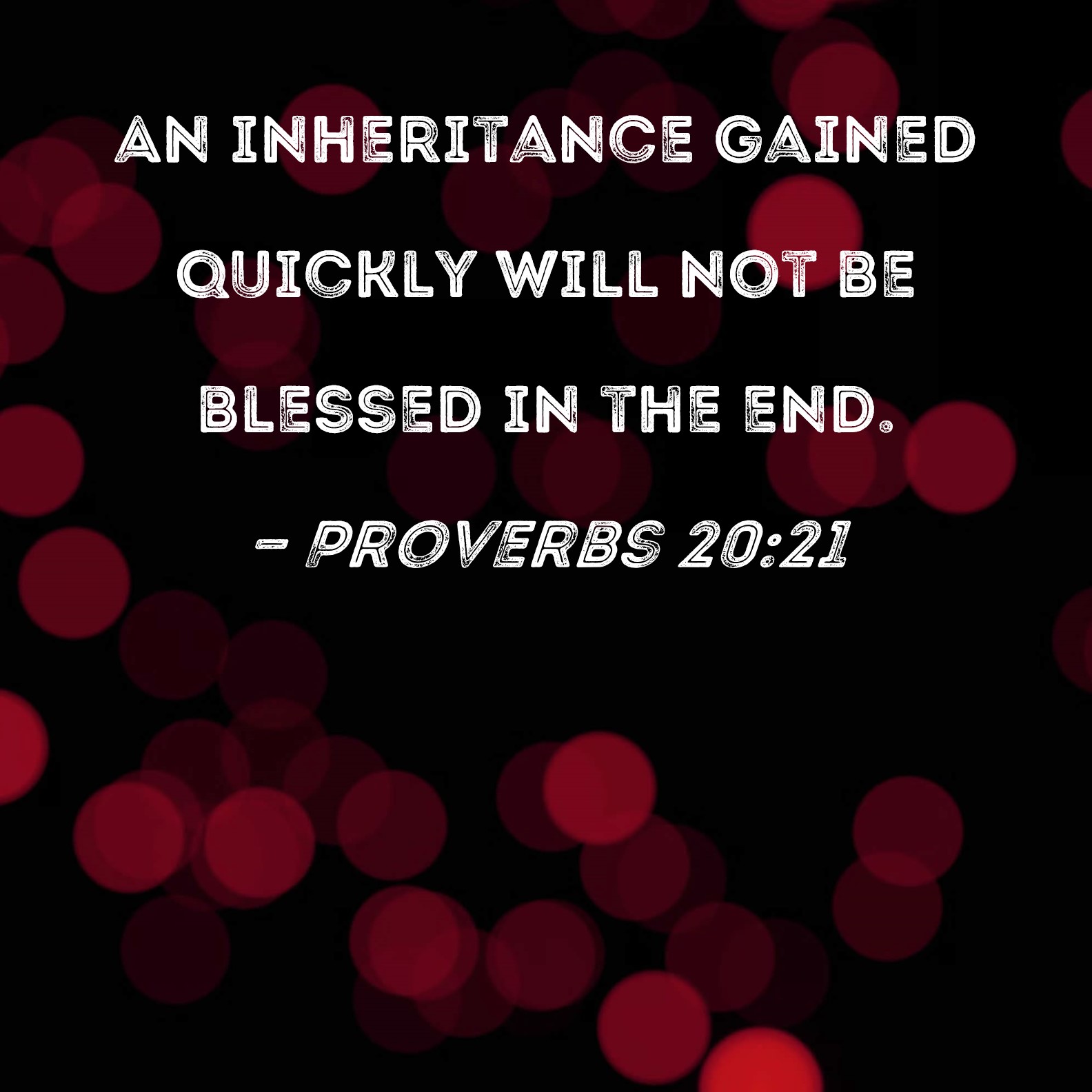 Proverbs 20:21 An inheritance gained quickly will not be blessed in the end.