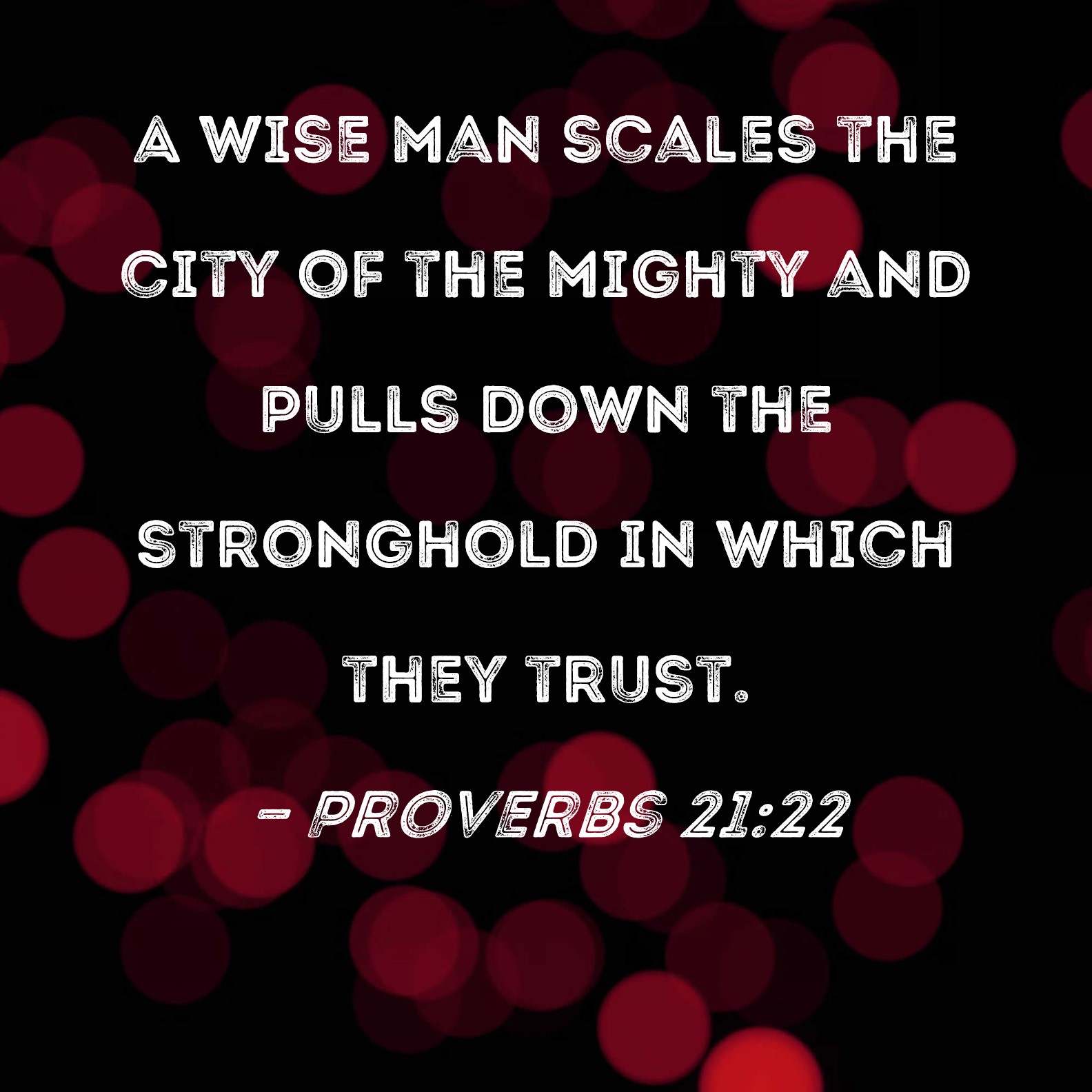 Proverbs 21:22 A wise man scales the city of the mighty and pulls down the stronghold in which they trust.