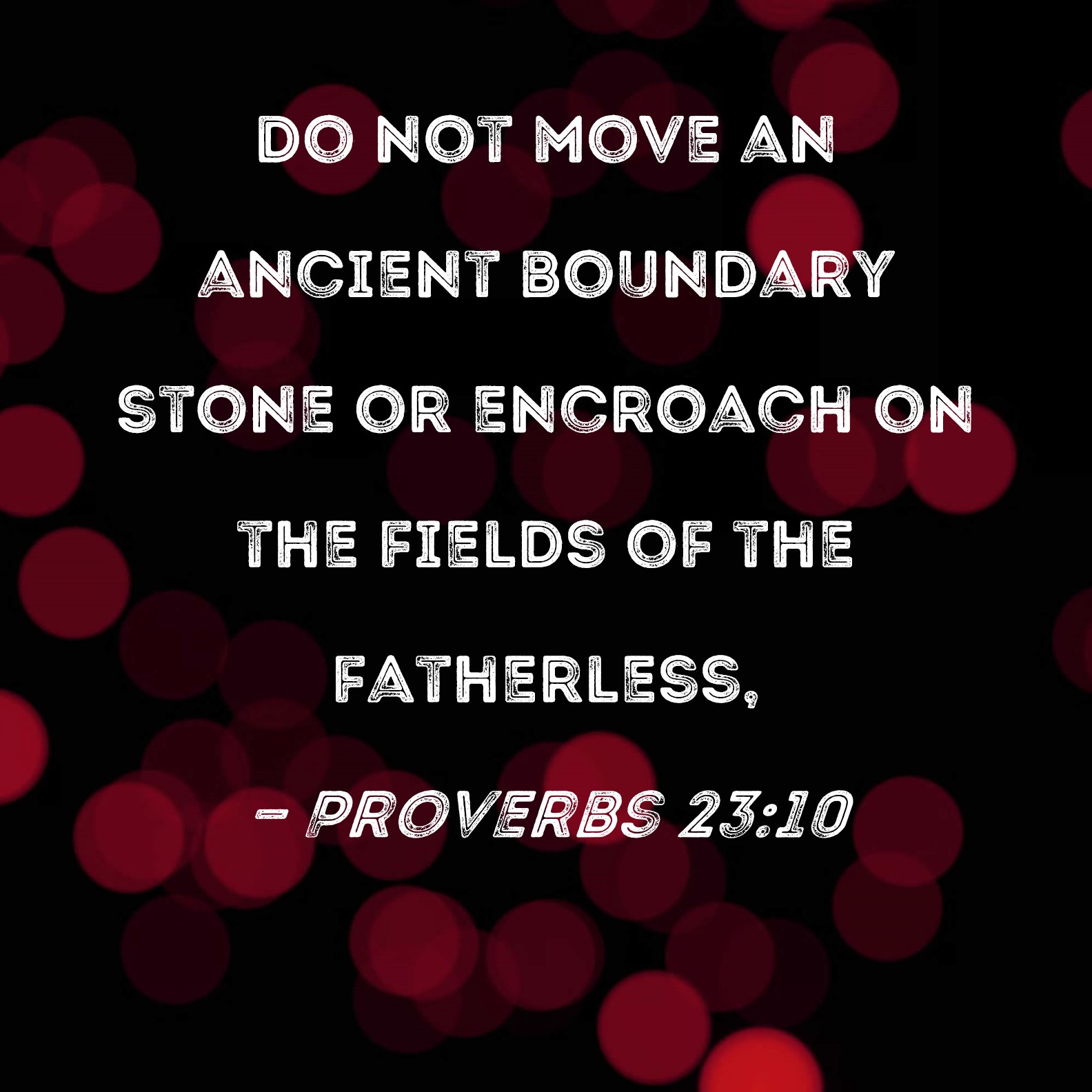 Proverbs 23:10 Do not move an ancient boundary stone or encroach on the fields of the fatherless,