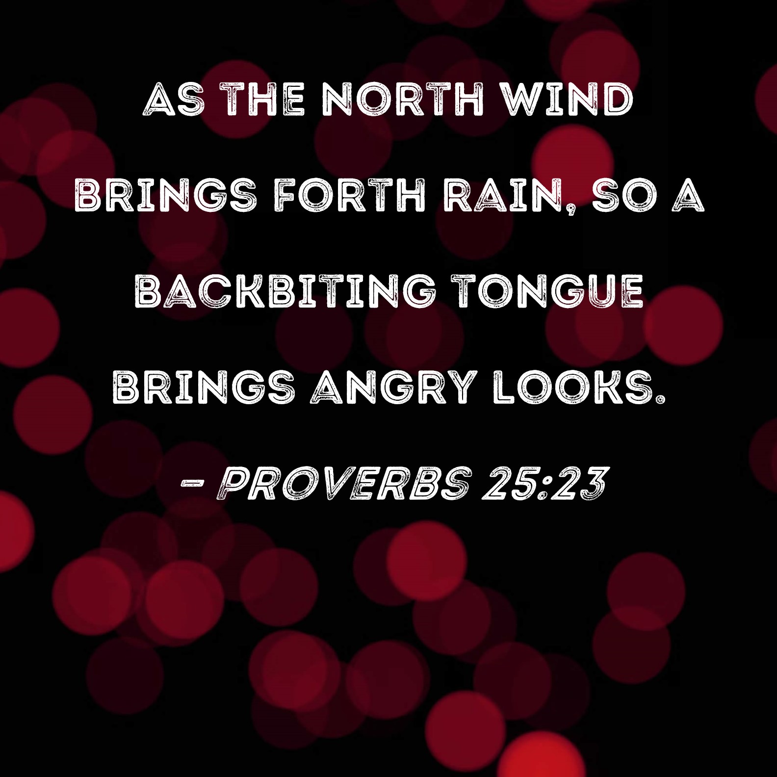 Proverbs 25:23 As the north wind brings forth rain, so a backbiting tongue brings angry looks.