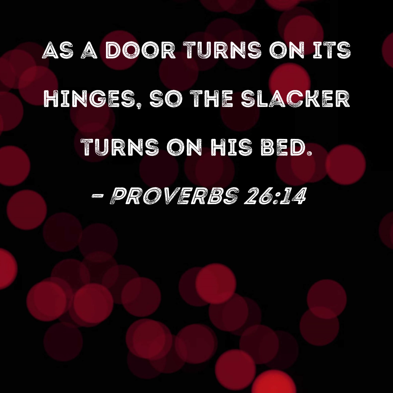 Proverbs 26:14 As a door turns on its hinges, so the slacker turns on his bed.