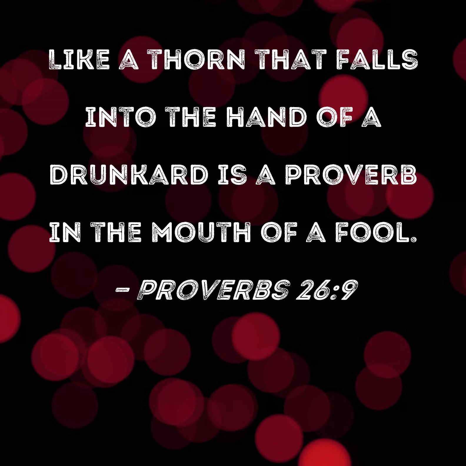 Proverbs 26:9 Like a thorn that falls into the hand of a drunkard is a proverb in the mouth of a fool.