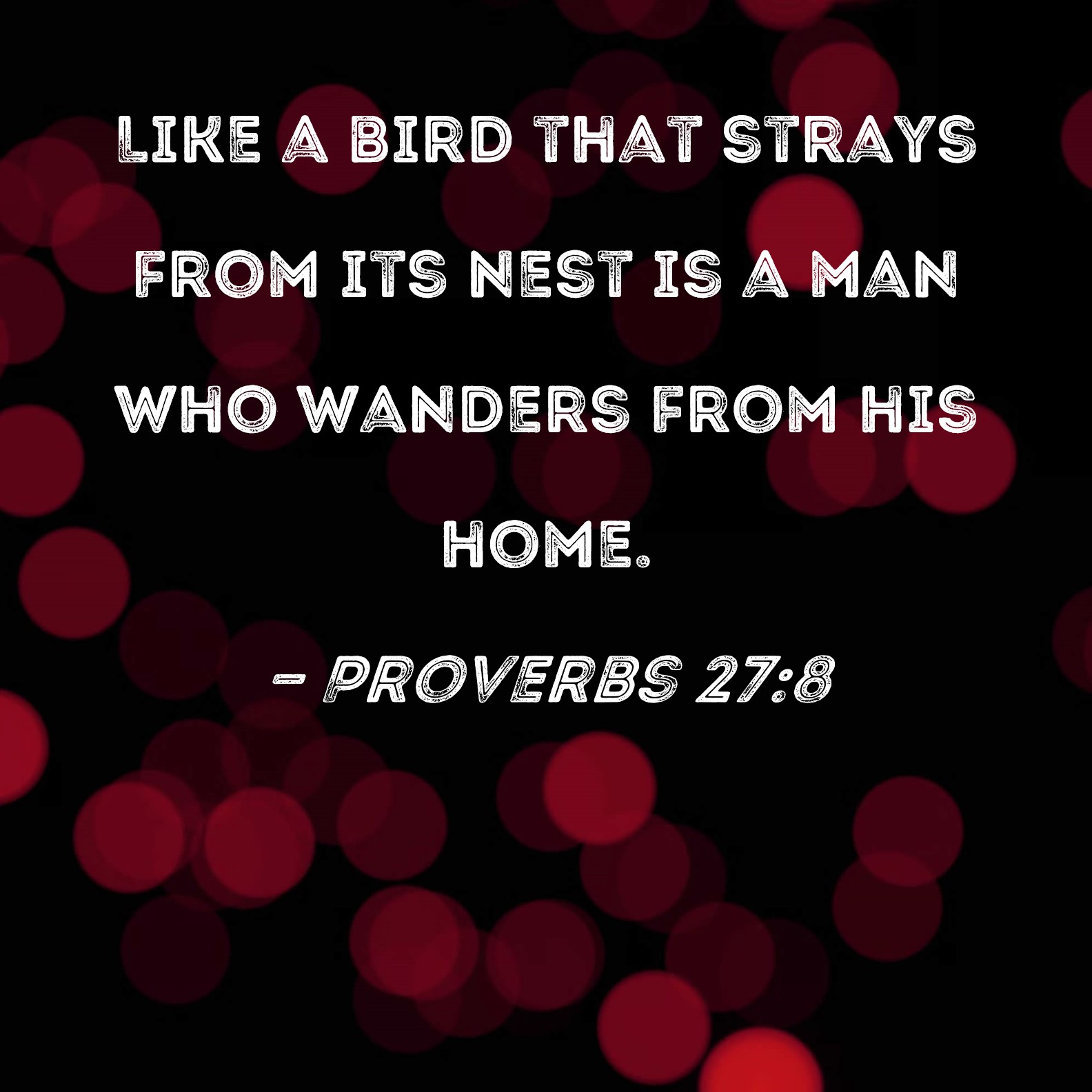 Proverbs 27:8 Like a bird that strays from its nest is a man who wanders from his home.