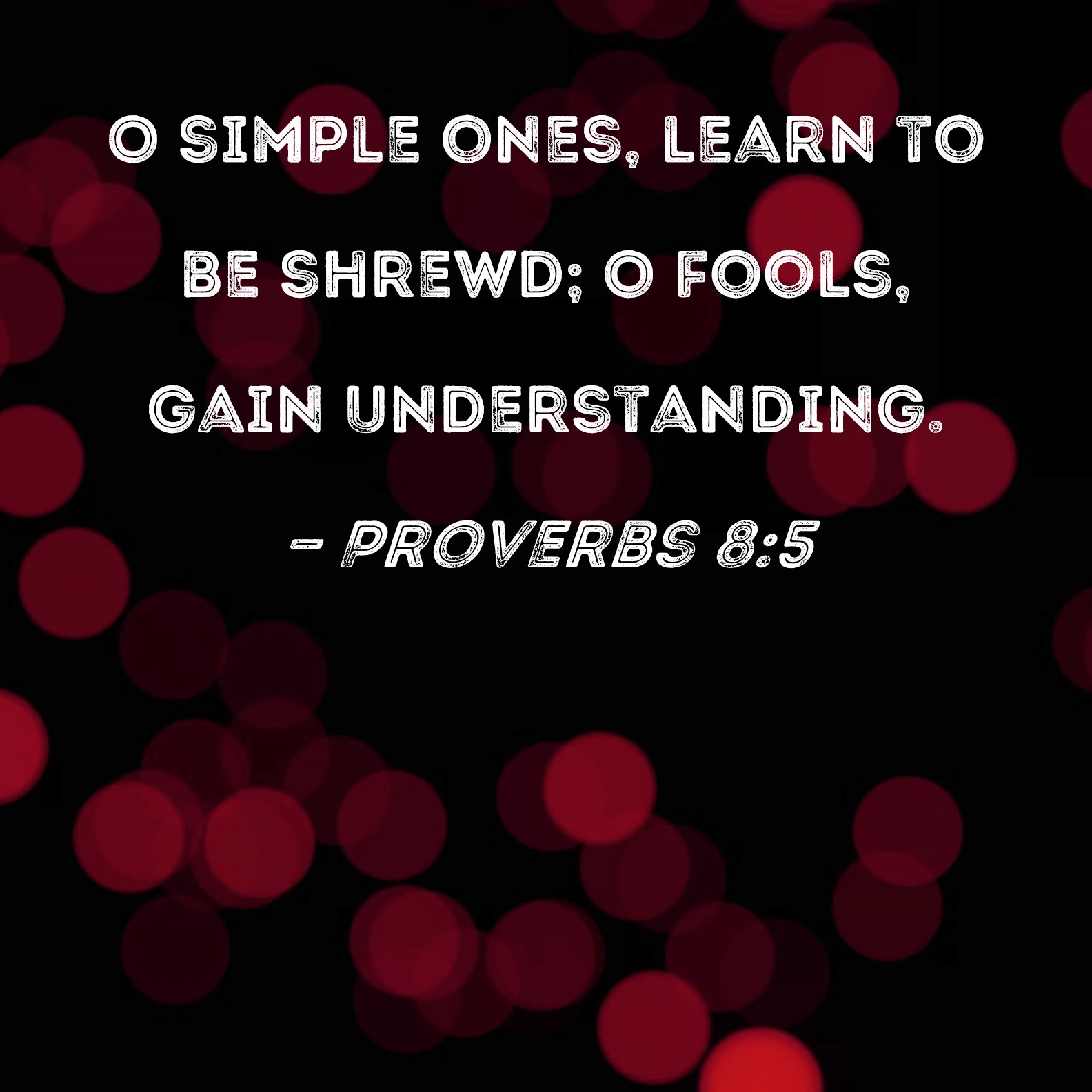 Proverbs 8:5 O simple ones, learn to be shrewd; O fools, gain understanding.
