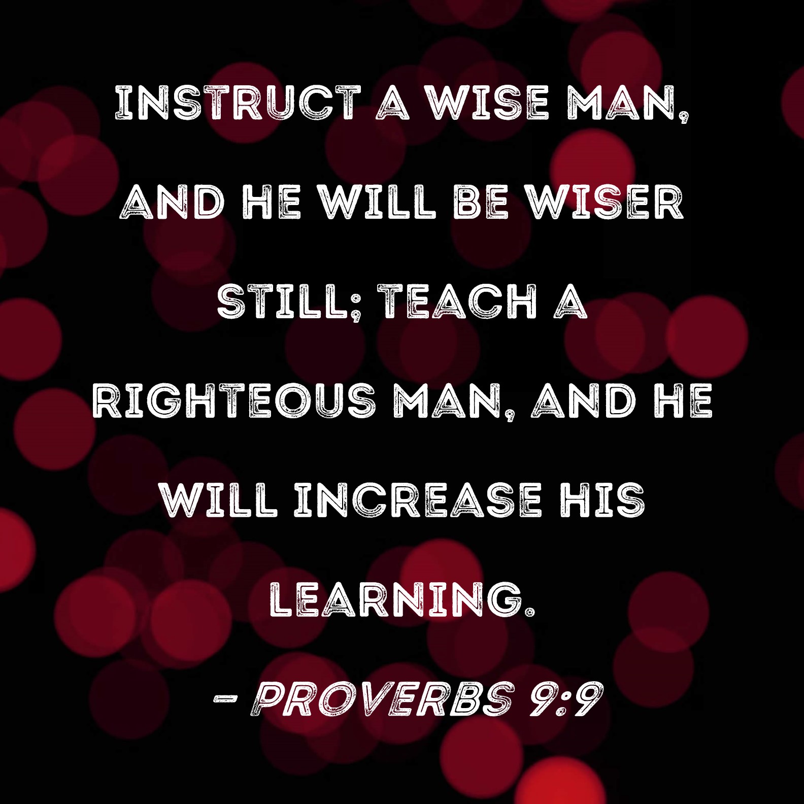 Proverbs 9:9 Instruct a wise man, and he will be wiser still; teach a righteous man, and he will increase his learning.