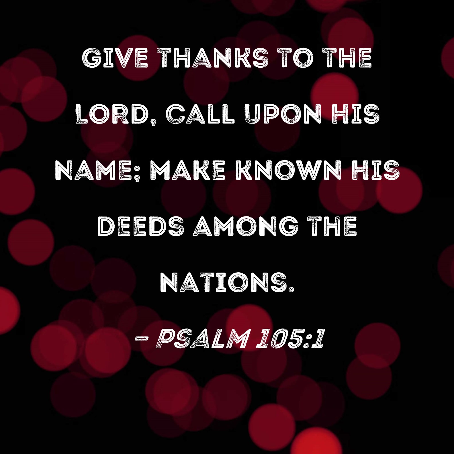 Psalm 105:1 Give thanks to the LORD, call upon His name; make known His deeds among the nations.
