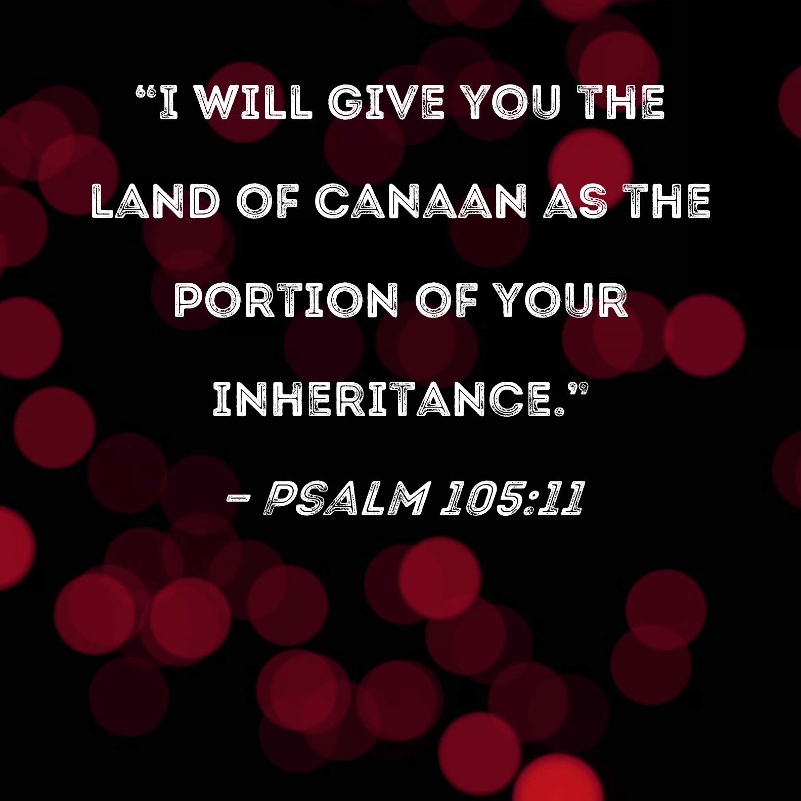 Psalm 105:11 "I will give you the land of Canaan as the portion of your inheritance."