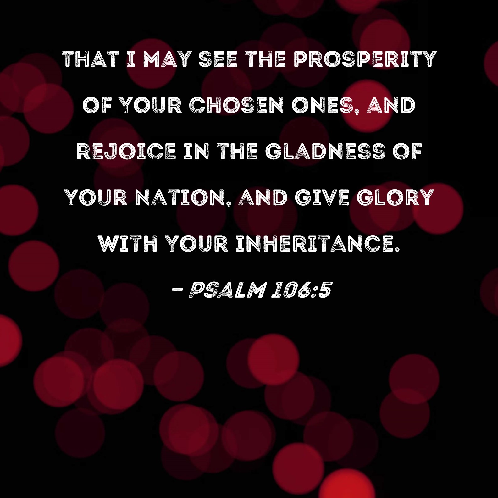 Psalm 106:5 that I may see the prosperity of Your chosen ones, and rejoice in the gladness of Your nation, and give glory with Your inheritance.