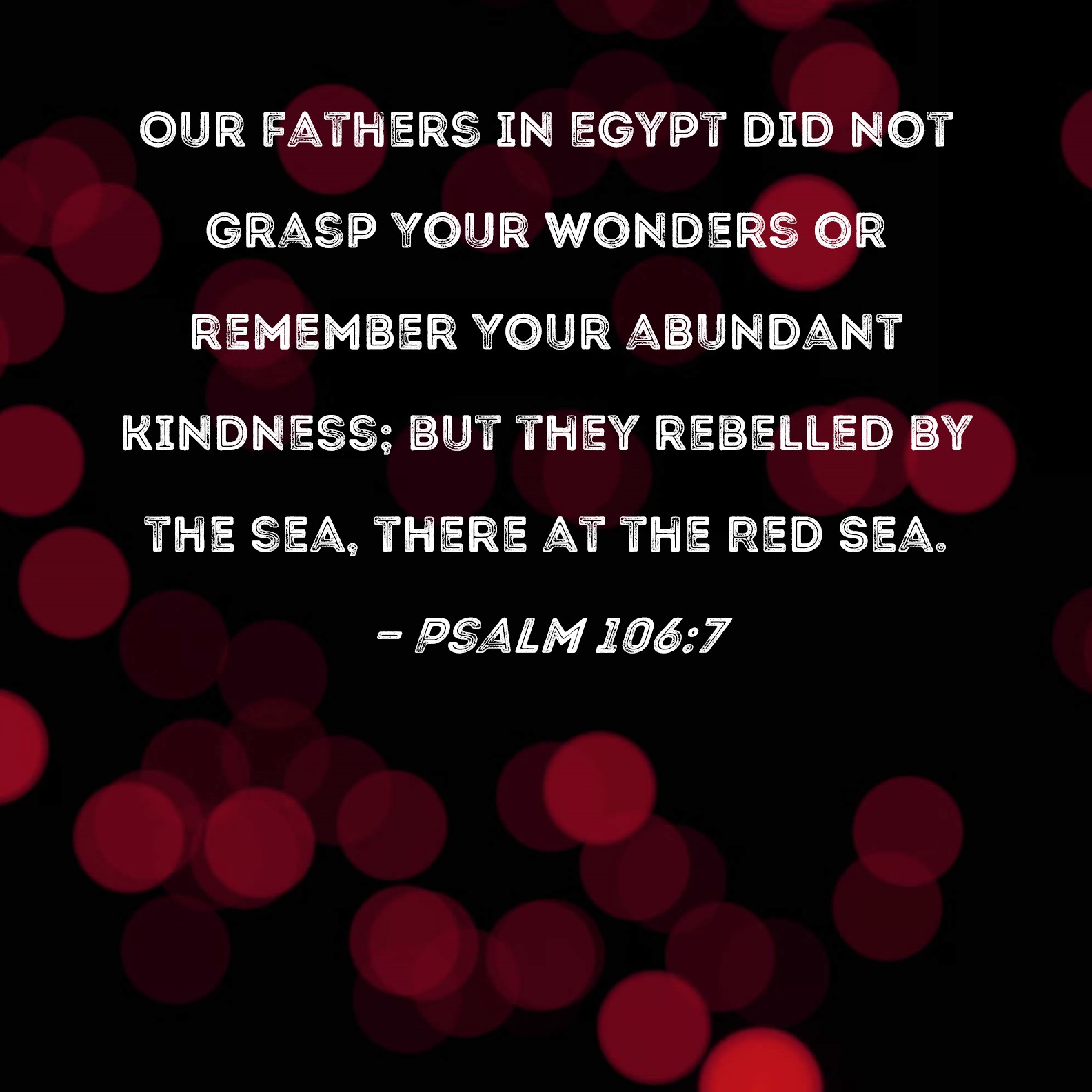 Psalm 106:7 Our fathers in Egypt did not grasp Your wonders or remember Your abundant kindness; but they rebelled by the sea, there at the Red Sea.