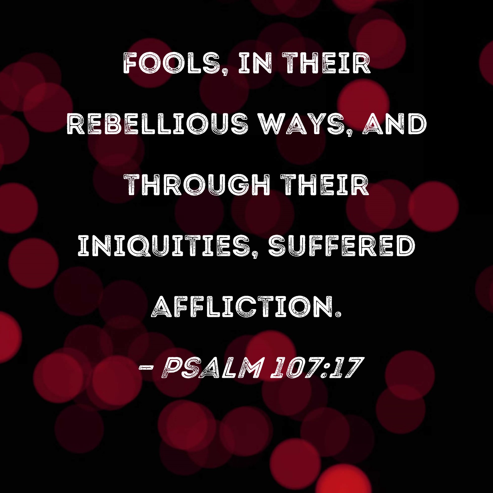 Psalm 107:17 Fools, in their rebellious ways, and through their iniquities, suffered affliction.