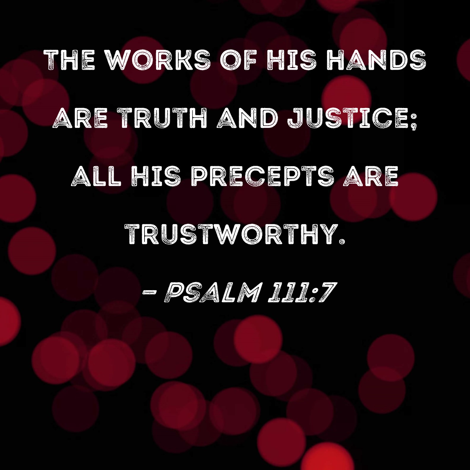 Psalm 111:7 The works of His hands are truth and justice; all His precepts are trustworthy.