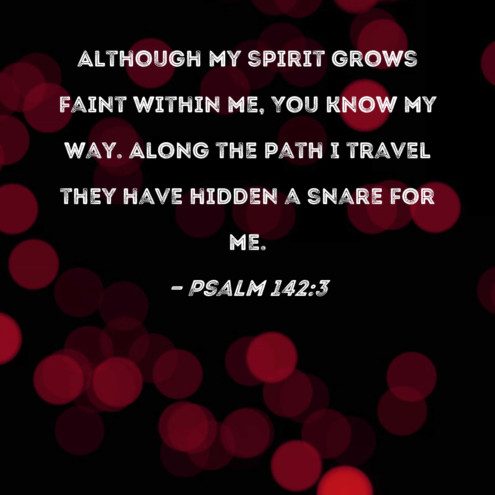 Psalm 142:3 Although my spirit grows faint within me, You know my way. Along the path I travel they have hidden a snare for me.