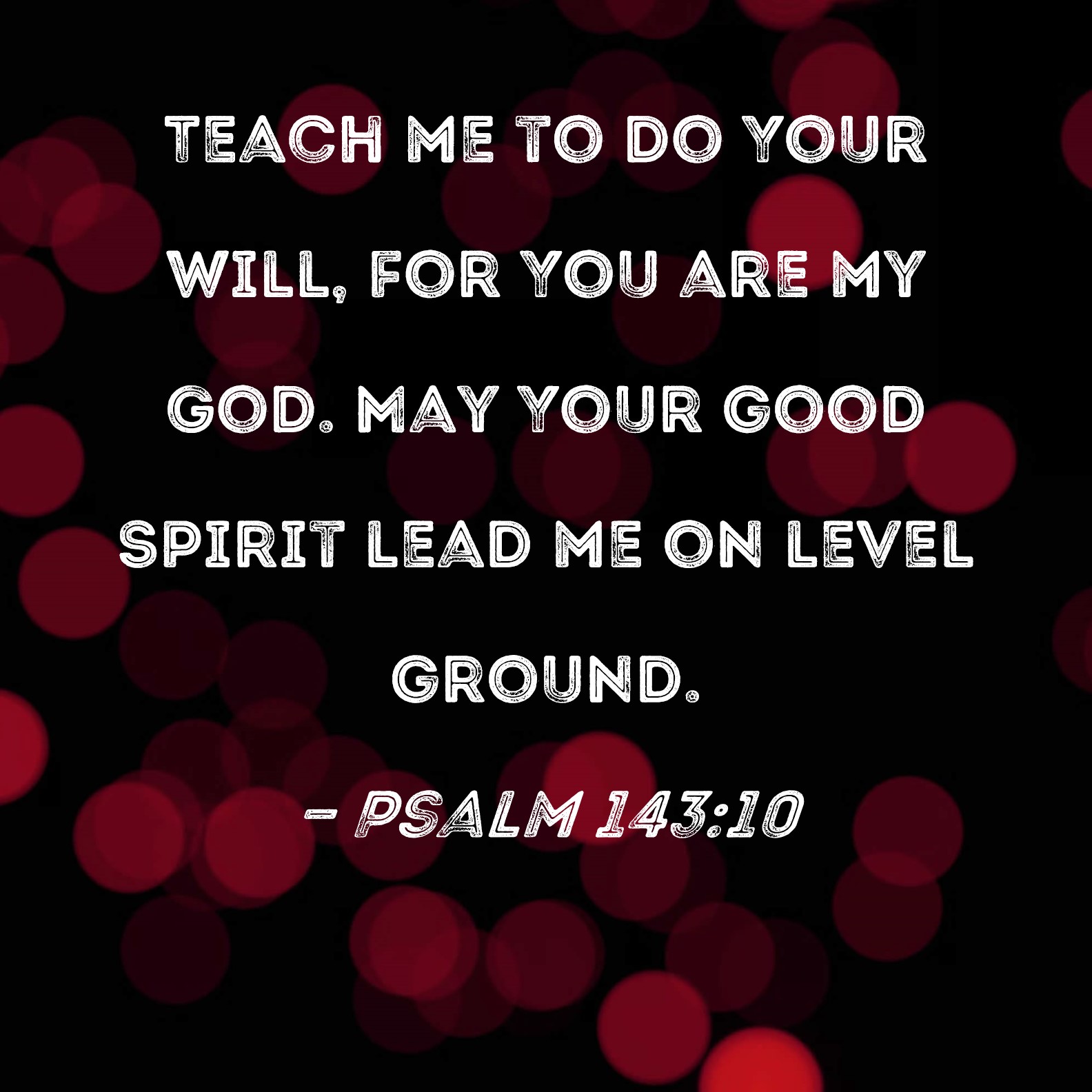 Psalm 143:10 Teach me to do Your will, for You are my God. May Your good Spirit lead me on level ground.