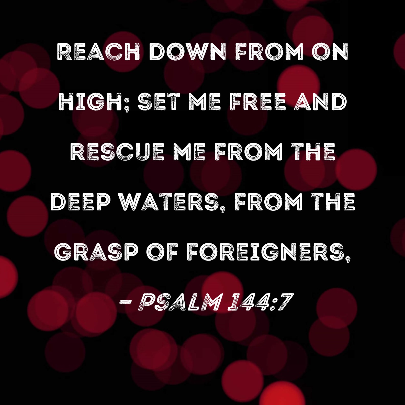 Psalm 144:7 Reach down from on high; set me free and rescue me from the deep waters, from the grasp of foreigners,