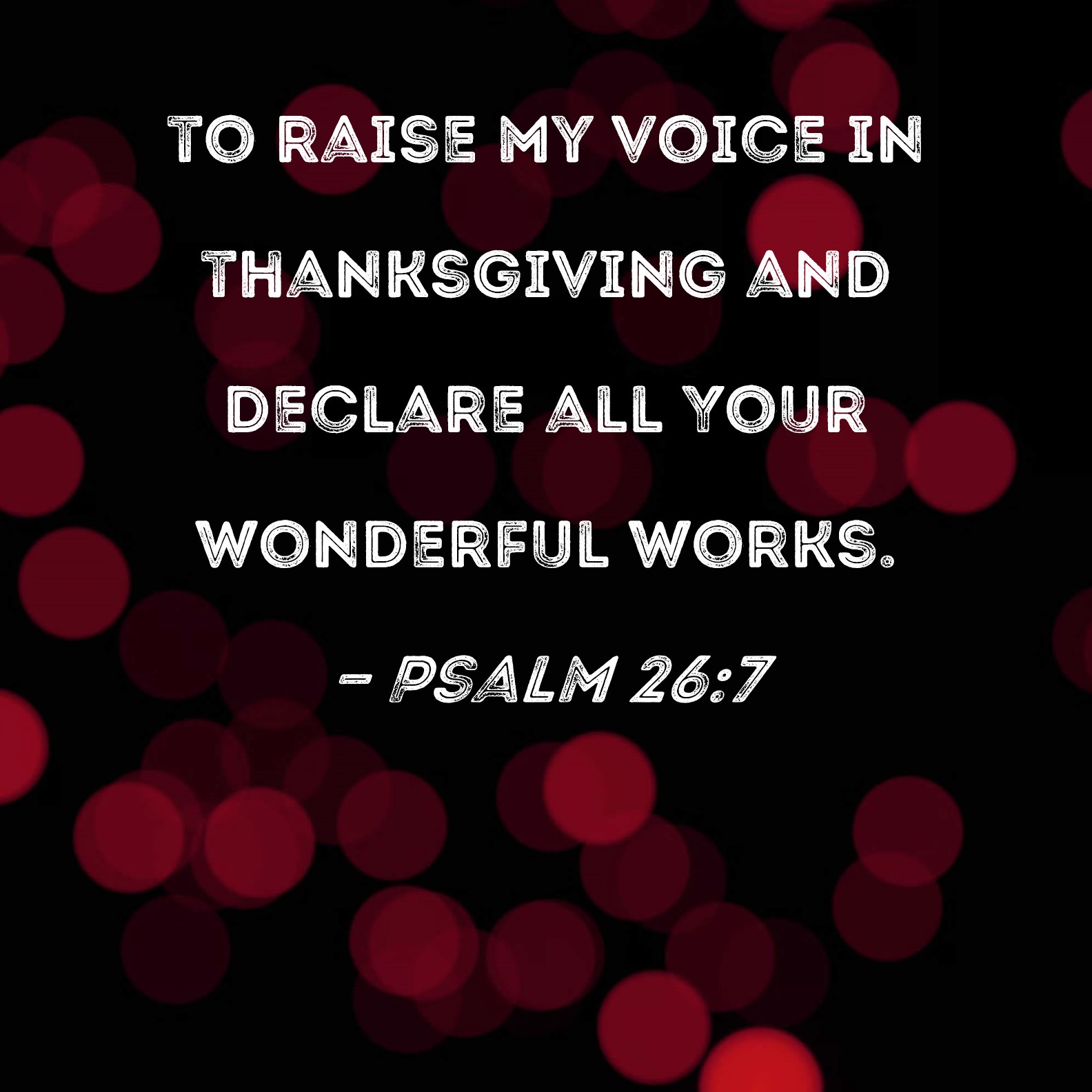 Psalm 26:7 to raise my voice in thanksgiving and declare all Your wonderful works.