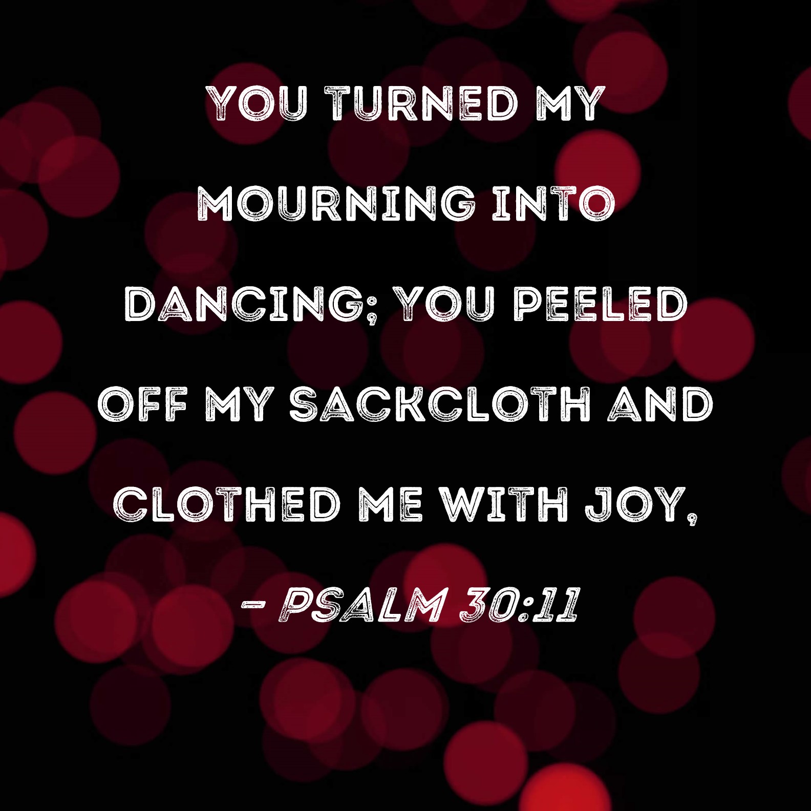 Psalm 30:11 You turned my mourning into dancing; You peeled off my sackcloth and clothed me with joy,
