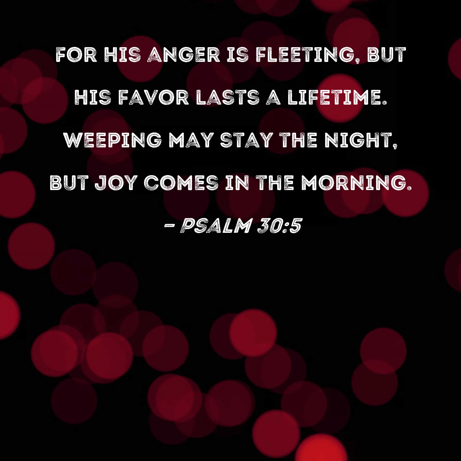 Psalm 30:5 For His anger is fleeting, but His favor lasts a lifetime. Weeping may stay the night, but joy comes in the morning.