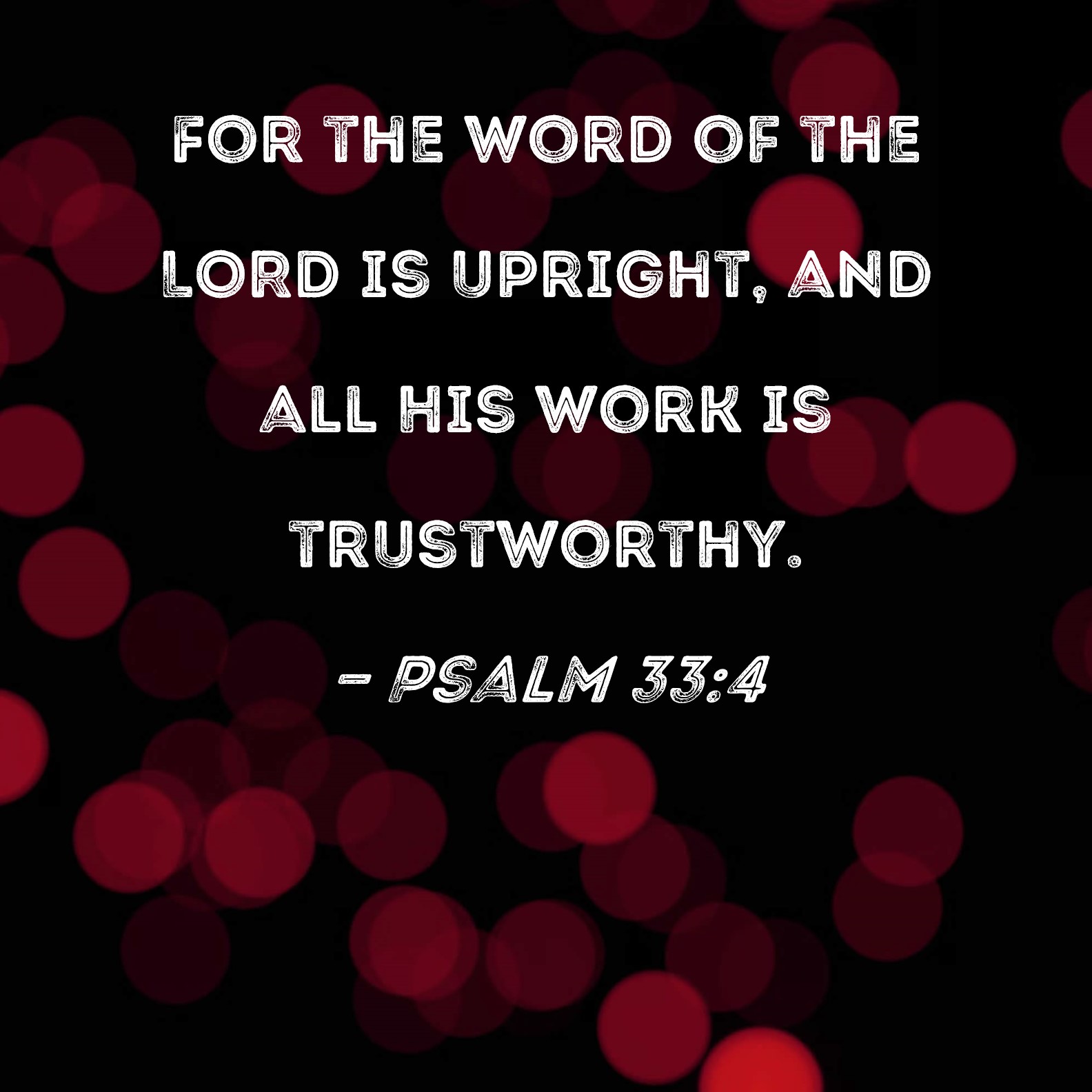 Psalm 33:4 For the word of the LORD is upright, and all His work is trustworthy.