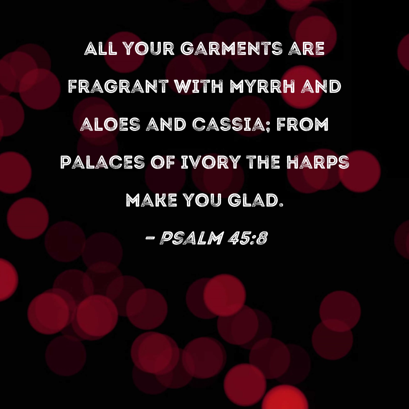 Psalm 45:8 All your garments are fragrant with myrrh and aloes and cassia; from palaces of ivory the harps make you glad.