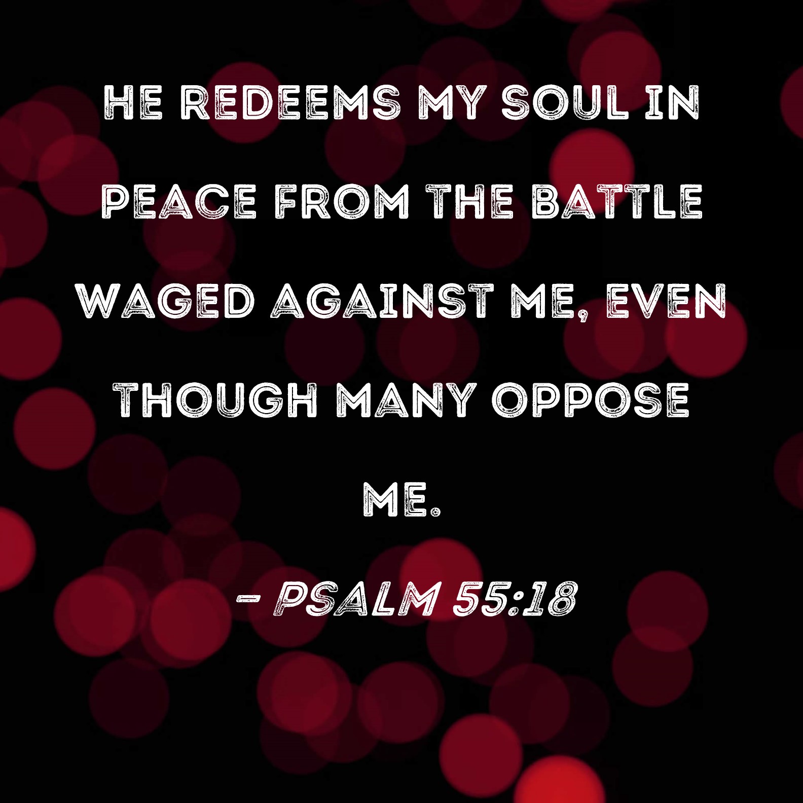 Psalm 55:18 He redeems my soul in peace from the battle waged against me, even though many oppose me.