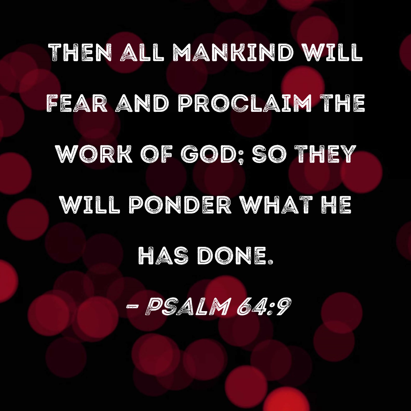 Psalm 64:9 Then all mankind will fear and proclaim the work of God; so they will ponder what He has done.