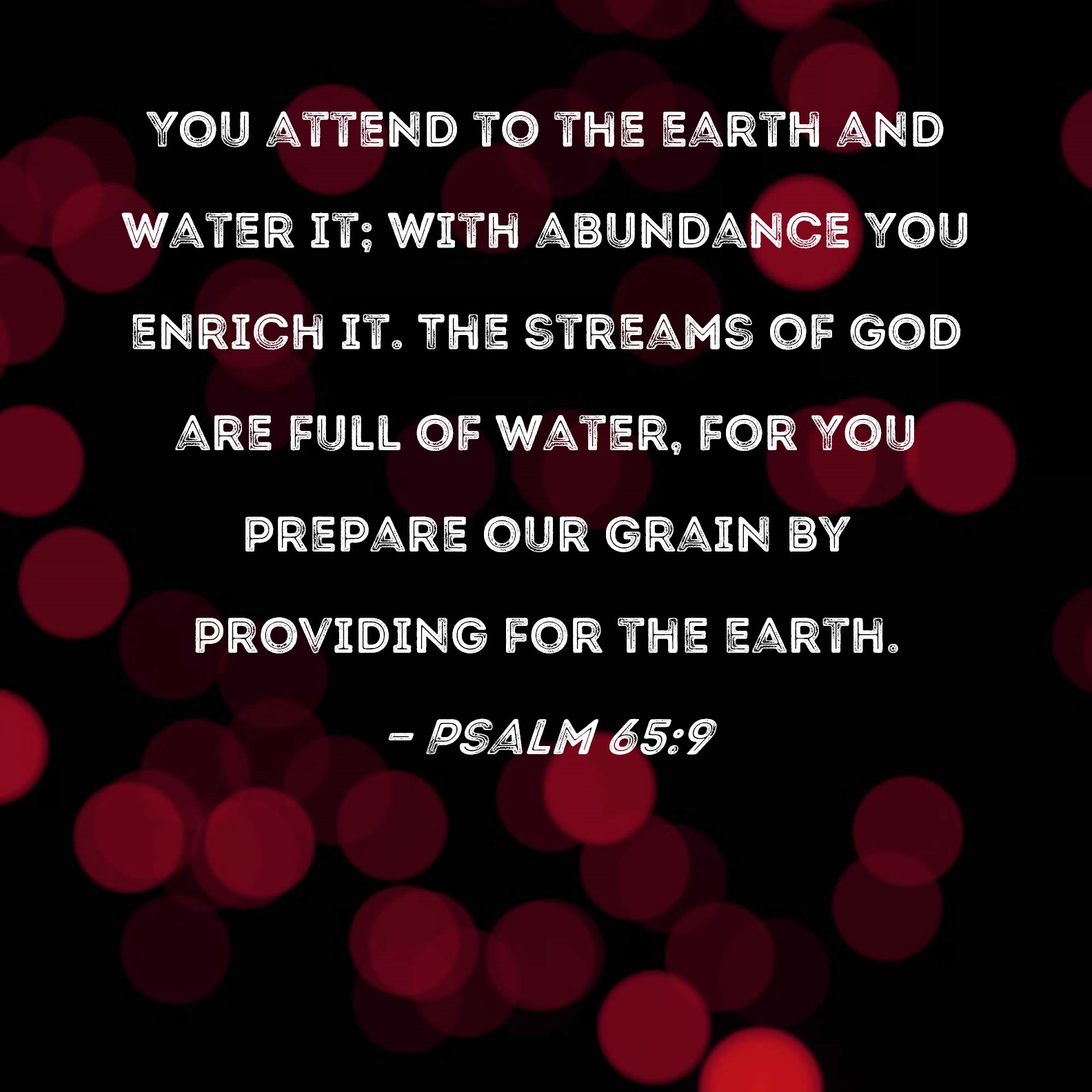 Psalm 65:9 You attend to the earth and water it; with abundance You enrich it. The streams of God are full of water, for You prepare our grain by providing for the earth.