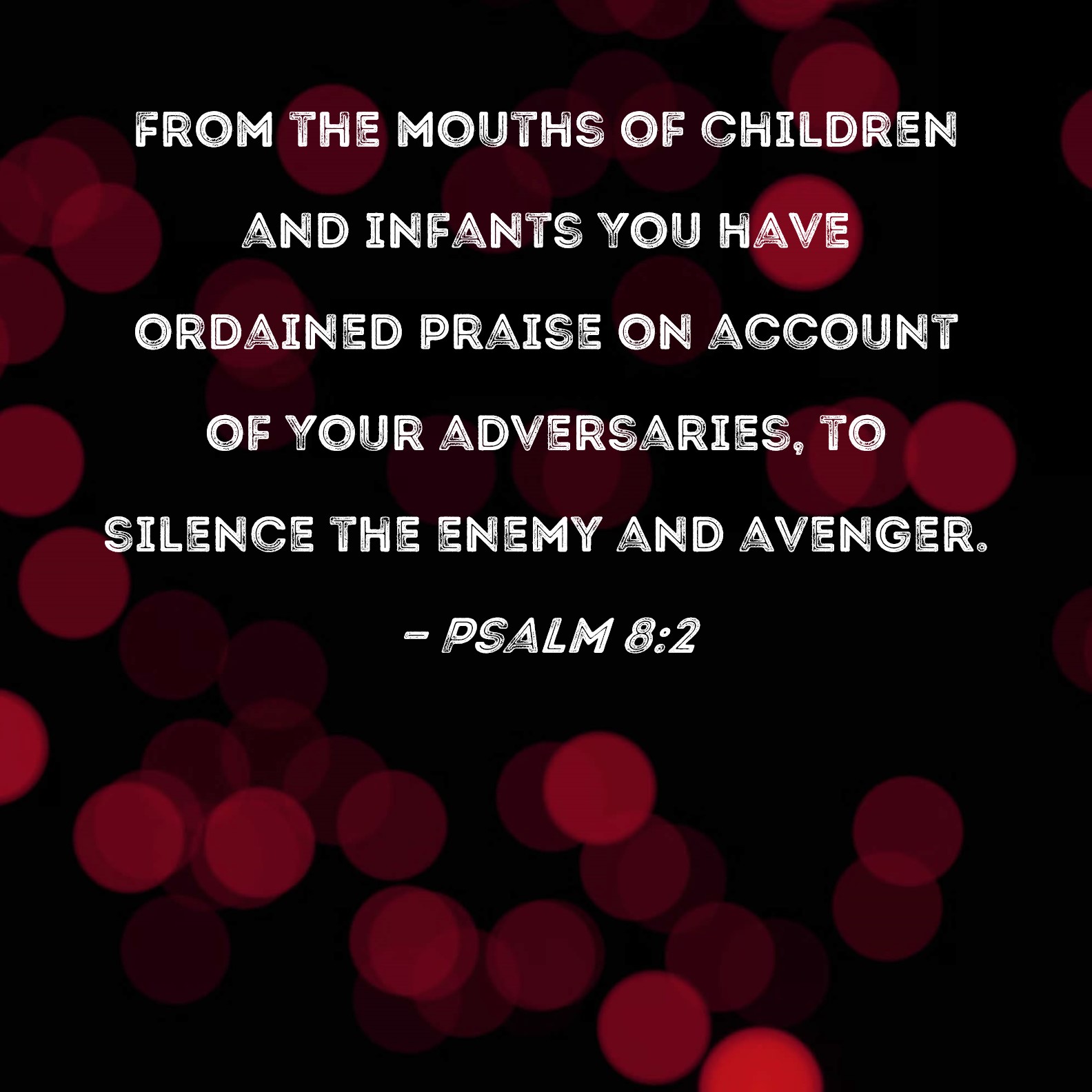 Psalm 8:2 From the mouths of children and infants You have ordained praise on account of Your adversaries, to silence the enemy and avenger.