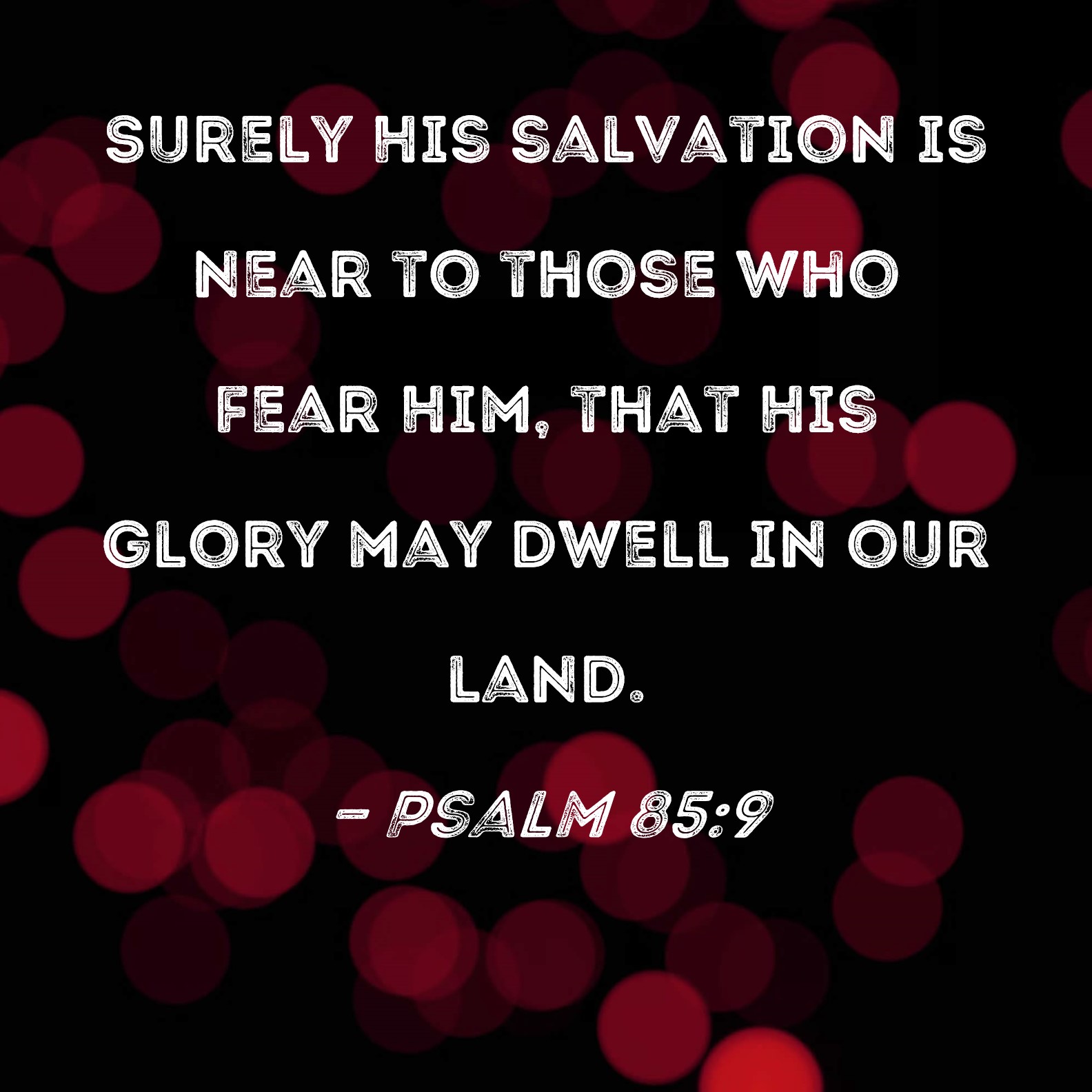 Psalm 85:9 Surely His salvation is near to those who fear Him, that His glory may dwell in our land.