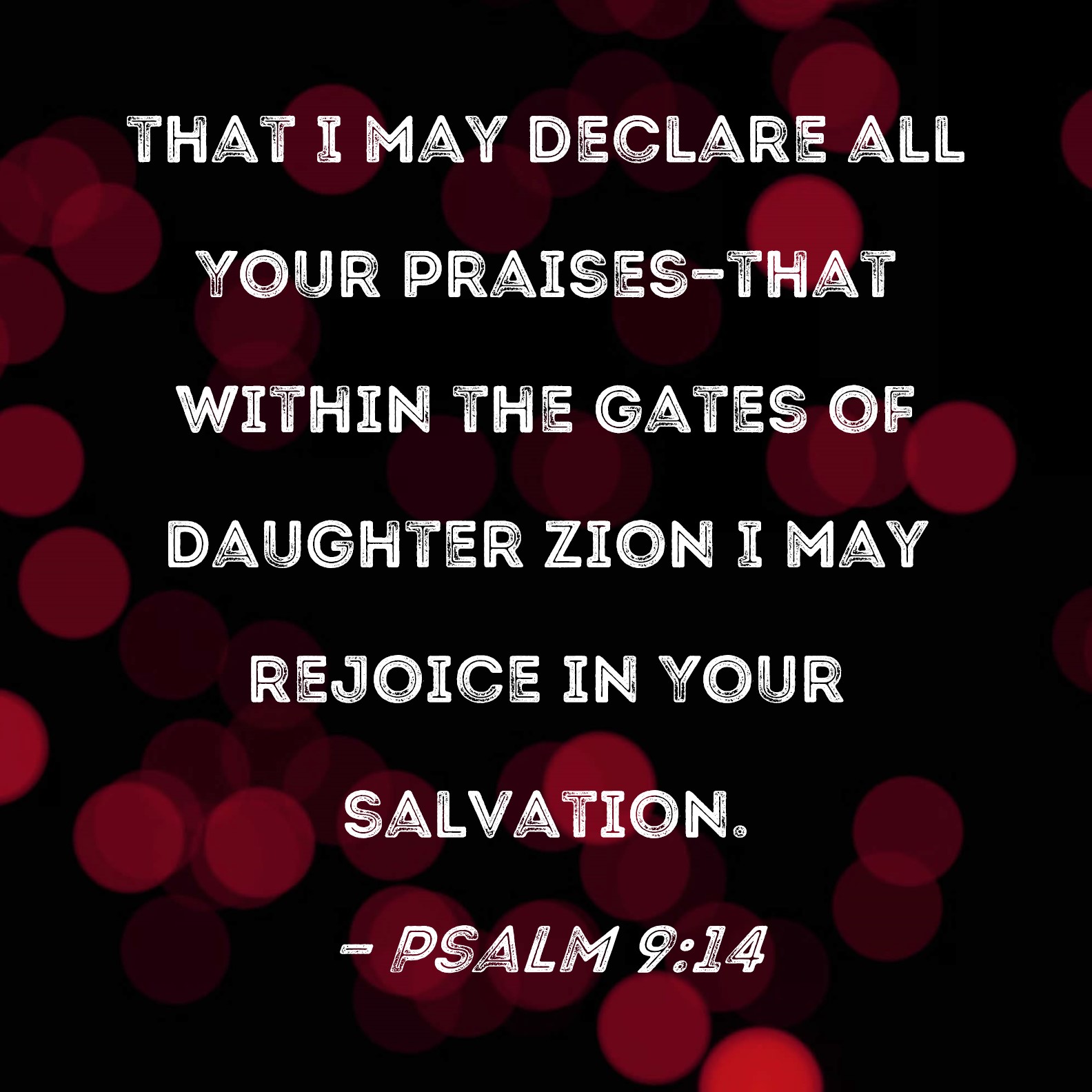 Psalm 9:14 that I may declare all Your praises--that within the gates of Daughter Zion I may rejoice in Your salvation.
