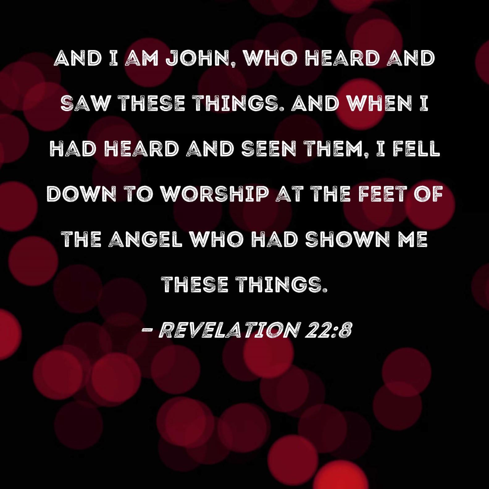 Revelation 22:8 And I am John, who heard and saw these things. And when I had heard and seen them, I fell down to worship at the feet of the angel who had shown me these things.