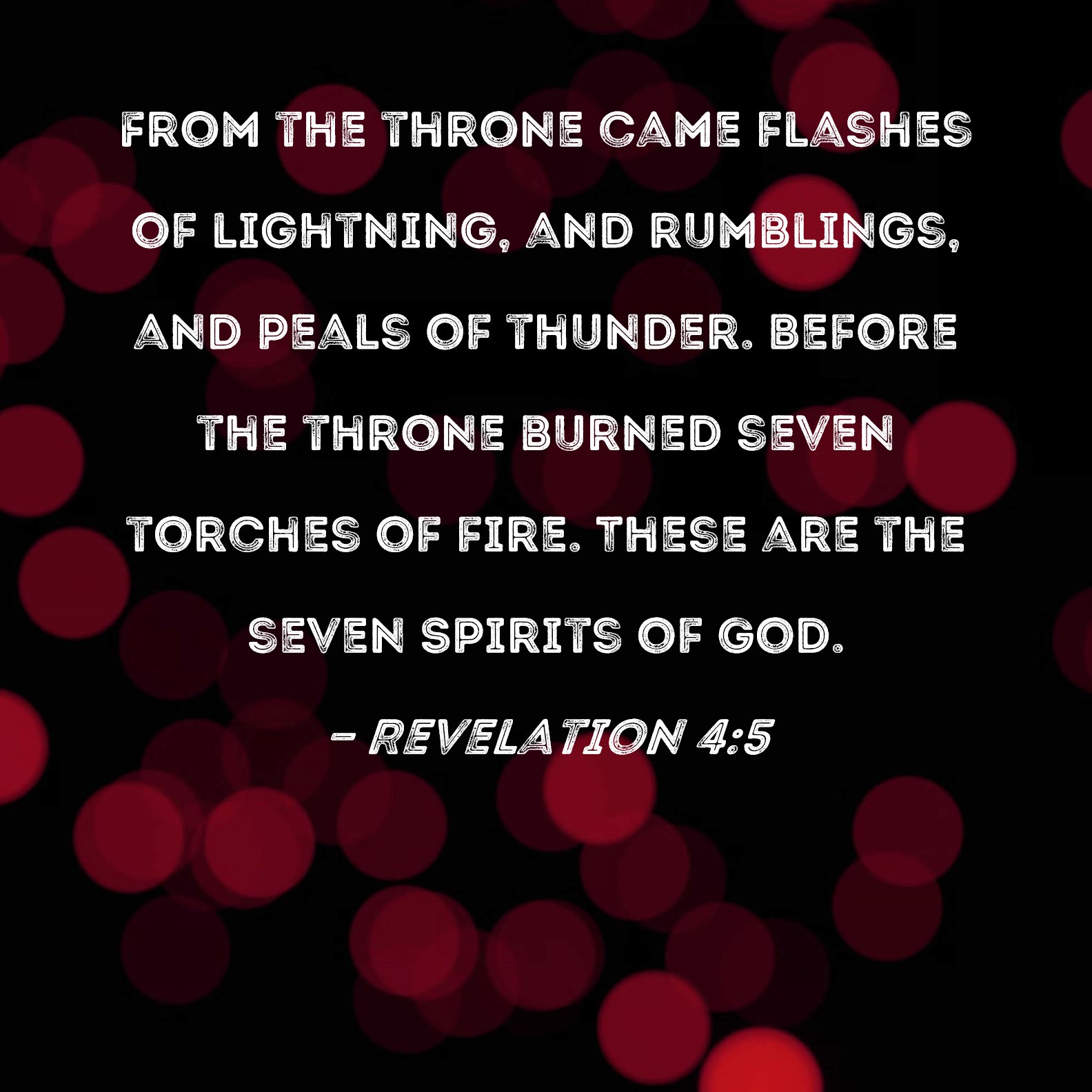 Revelation 4:5 From the throne came flashes of lightning, and rumblings, and peals of thunder. Before the throne burned seven torches of fire. These are the seven Spirits of God.