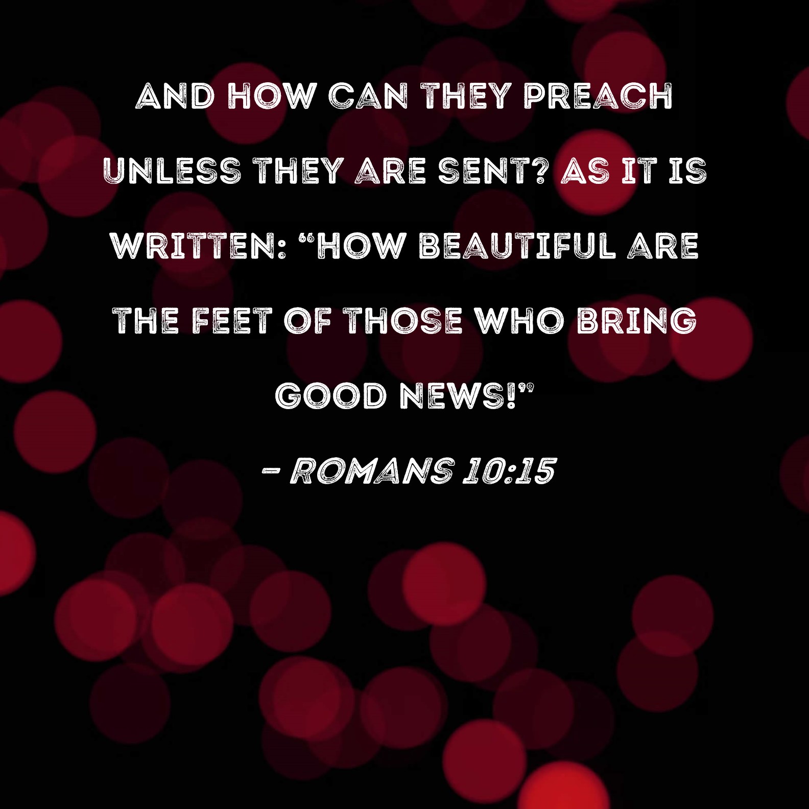 KJV:  And how shall they preach, except they be sent? as it is written, How beautiful are the feet of them that preach the gospel of peace, and bring glad tidings of good things!