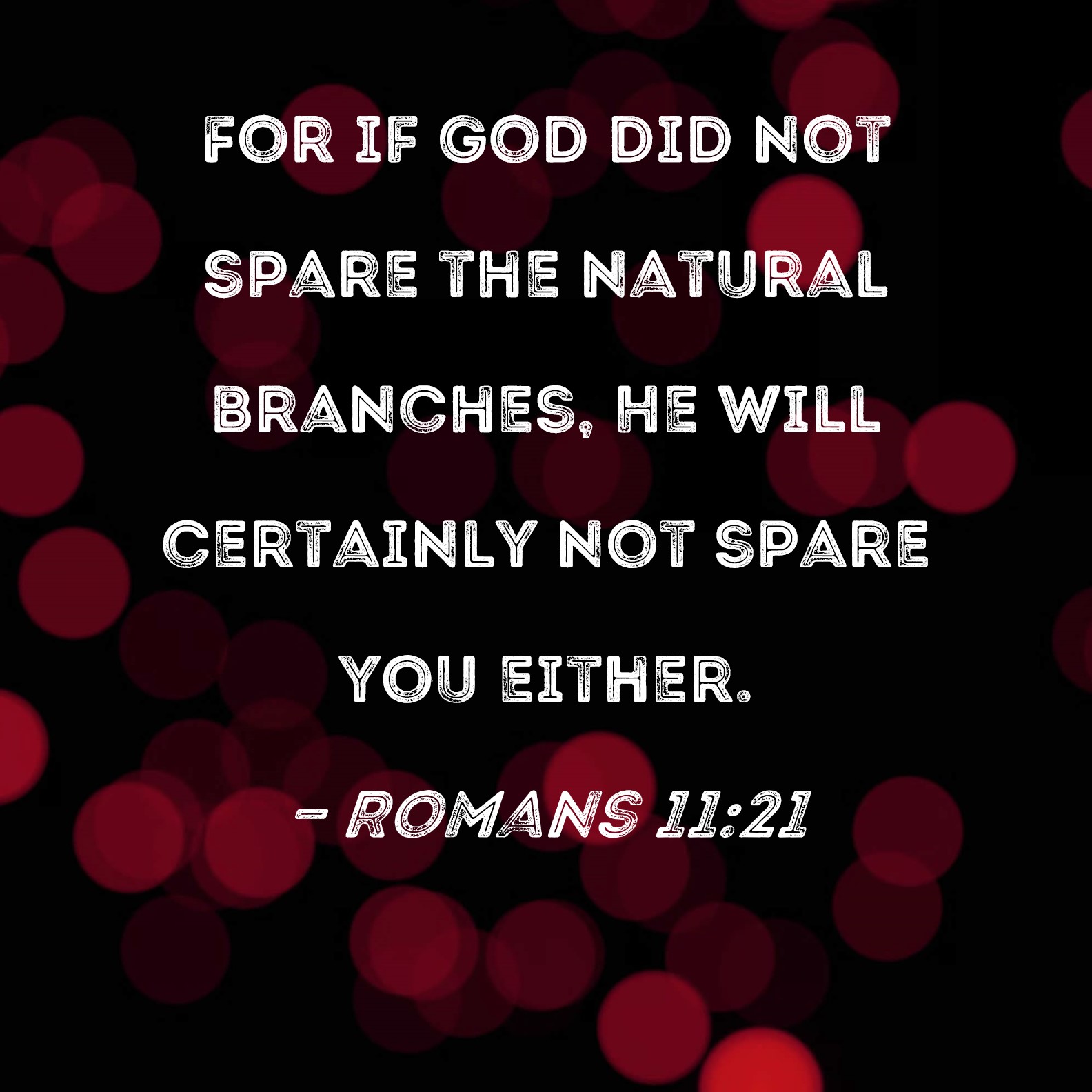 Romans 11:21 For if God did not spare the natural branches, He will certainly not spare you either.