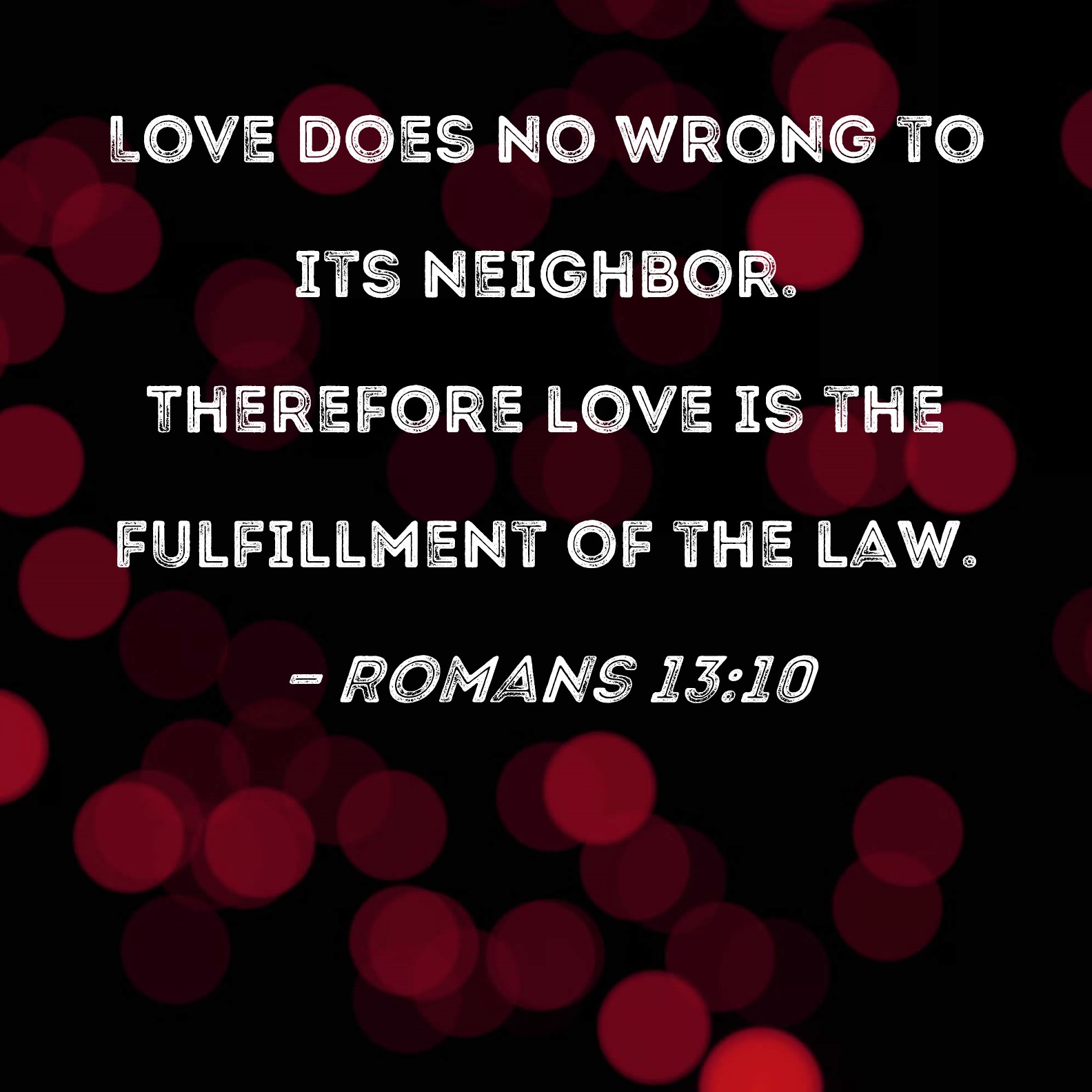 Romans 13:10 Love does no wrong to its neighbor. Therefore love is the fulfillment of the law.