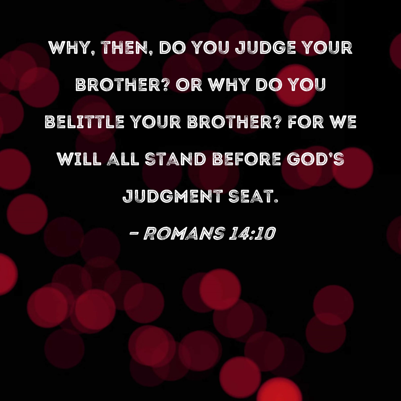 Romans 14:10 Why, then, do you judge your brother? Or why do you belittle your brother? For we will all stand before God's judgment seat.