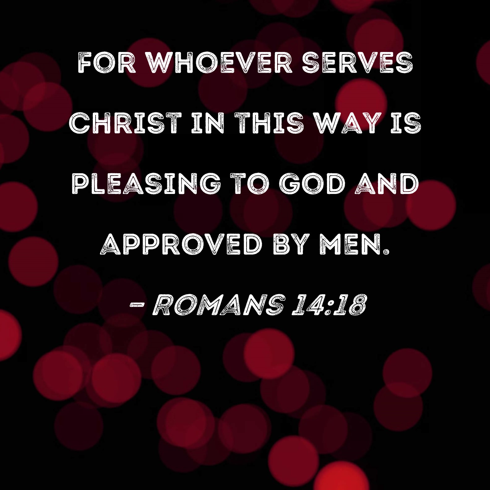 Romans 14:18 For whoever serves Christ in this way is pleasing to God and approved by men.